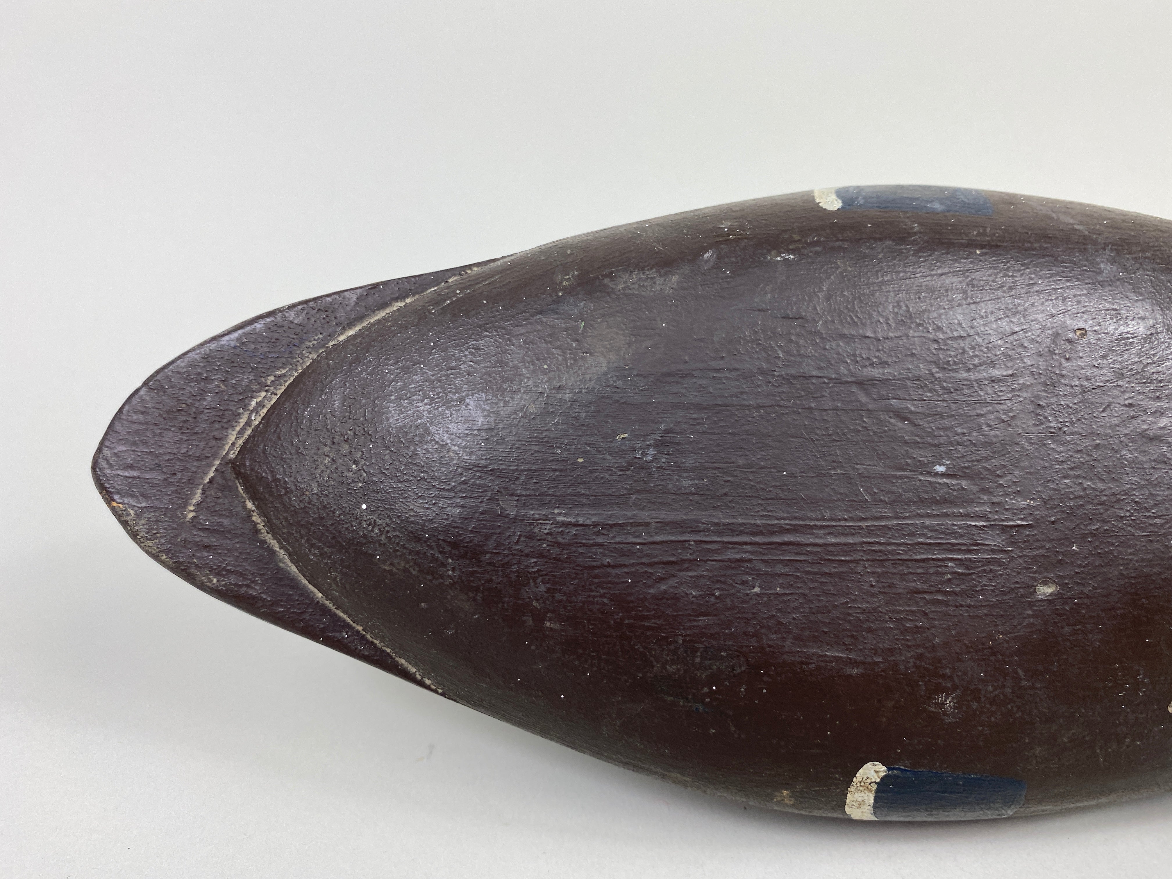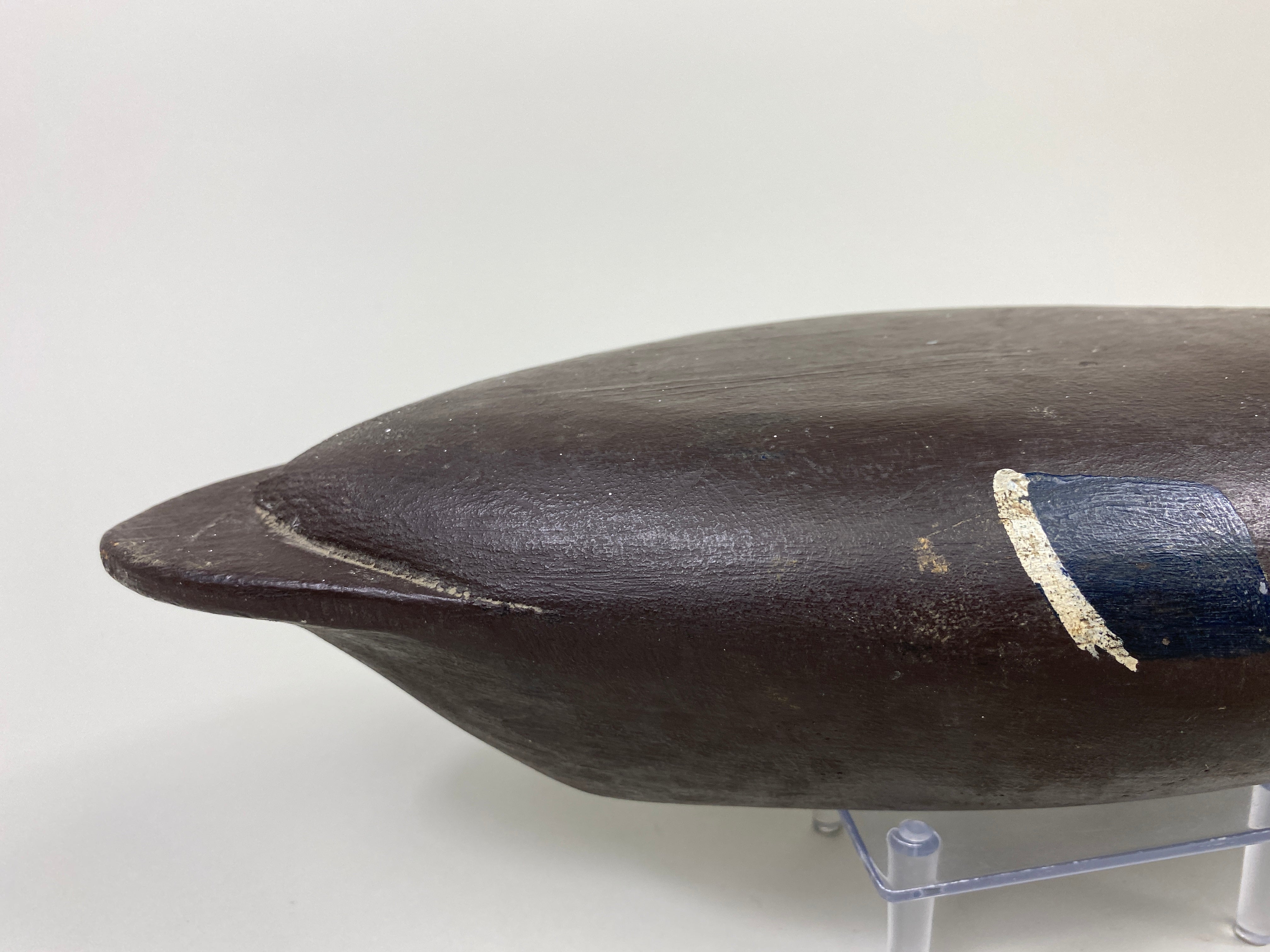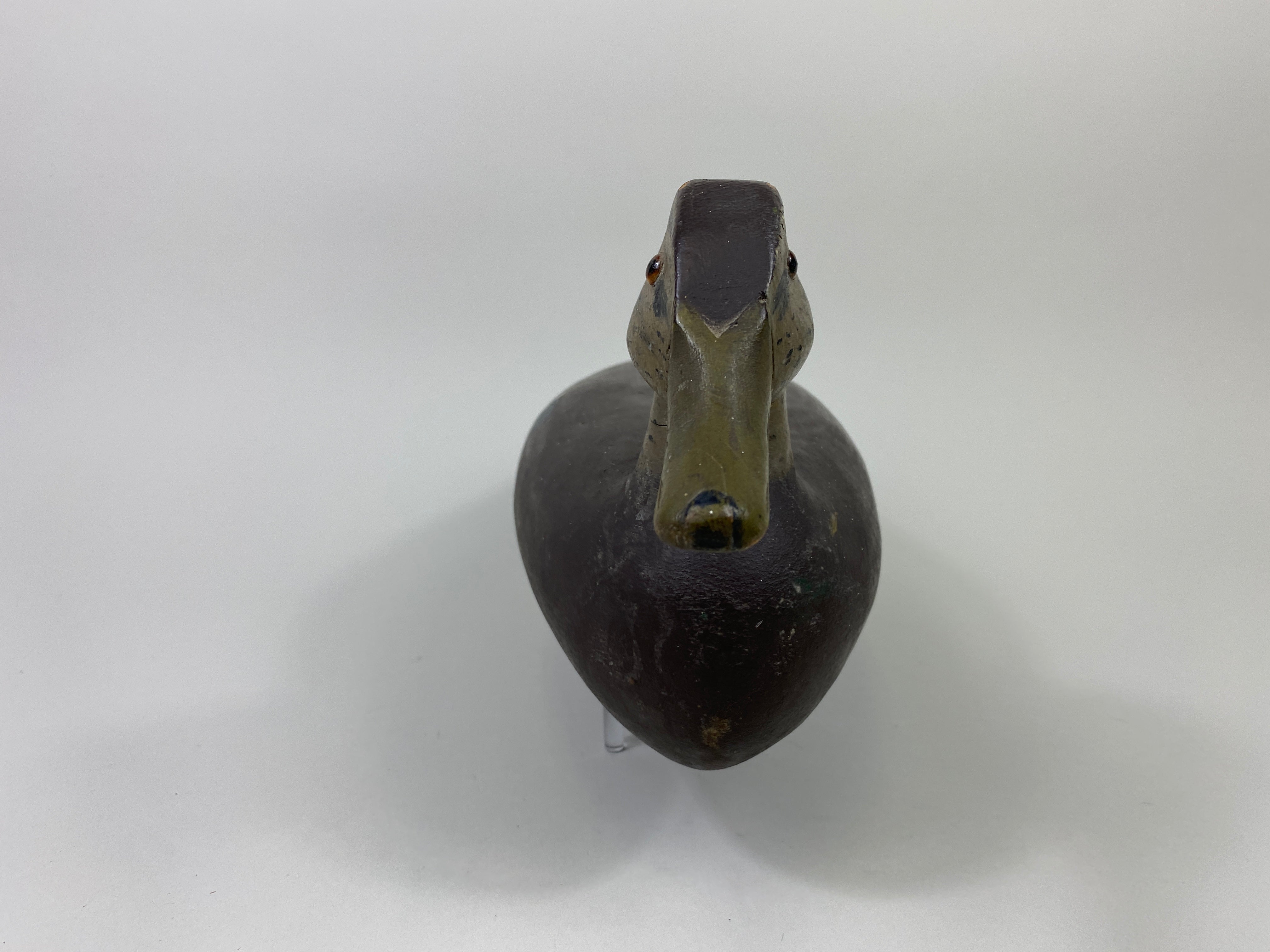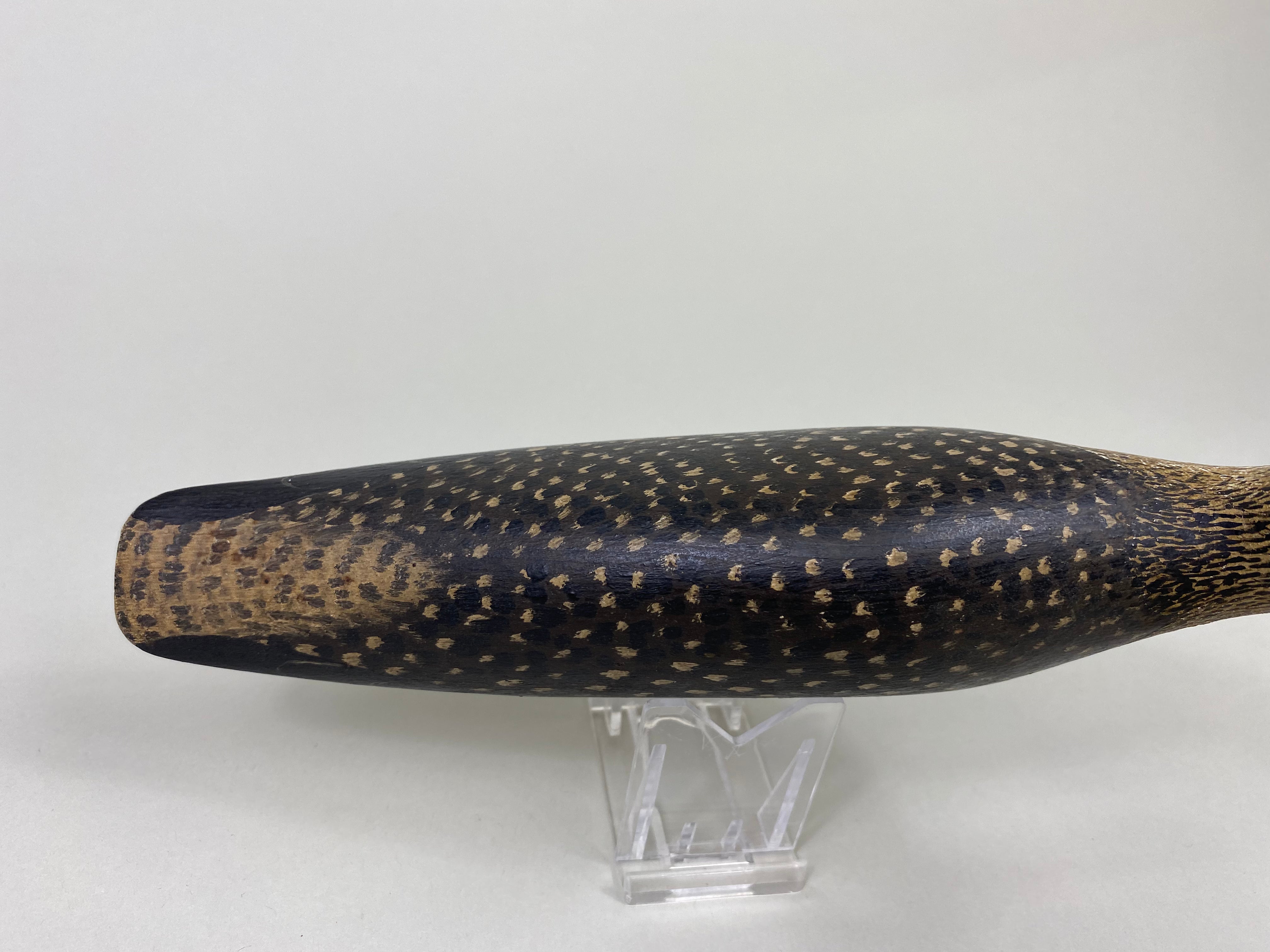 George "Skippy" Barto Black Duck, Tiskilwa, Illinois. Glass eyes, hollow body, original paint, BB marks, hunting wear, hairline neck crack on one side, rare species for this carver. Decoy measures...