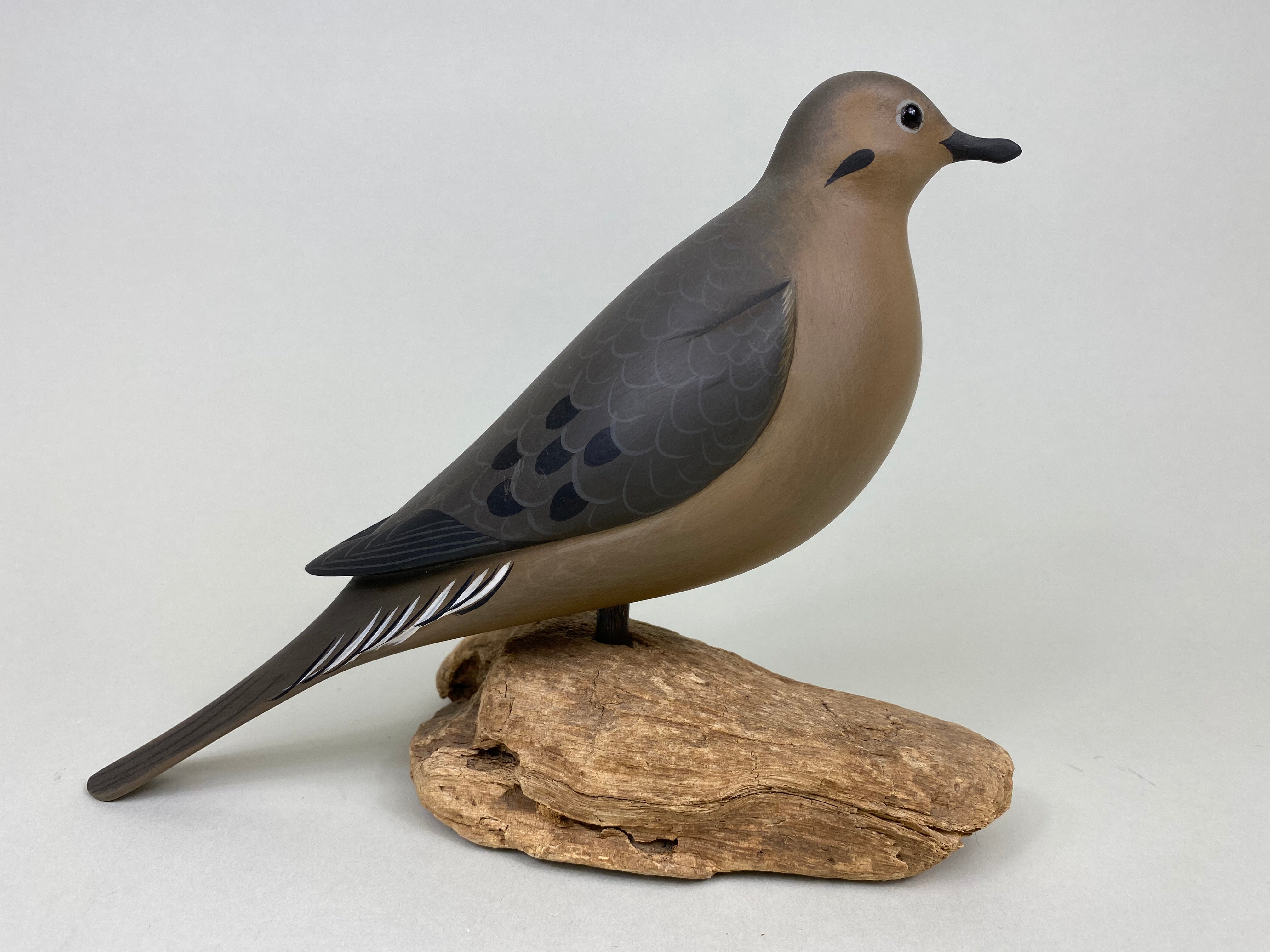 George Strunk Mourning Dove, Glendora, New Jersey. Glass eyes, all original, near mint, life like, detail carving, wooden beak, very nice example, signed by carver. Measures 12" from head to...