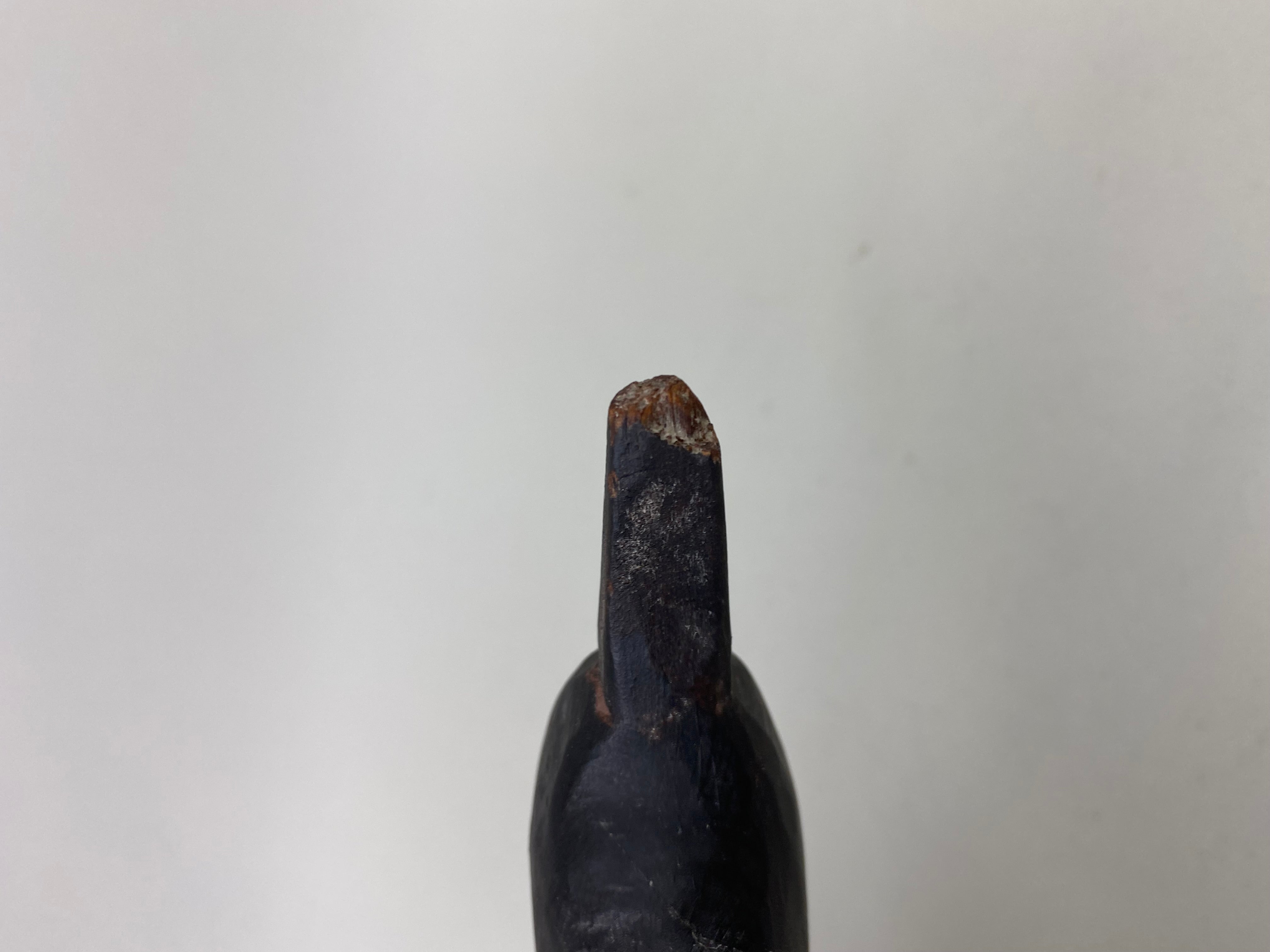 Wooden Turkey Call, unknown maker. Works and is in good condition. Measures 11-1/2" long, 2" wide, and 2-1/2" tall.