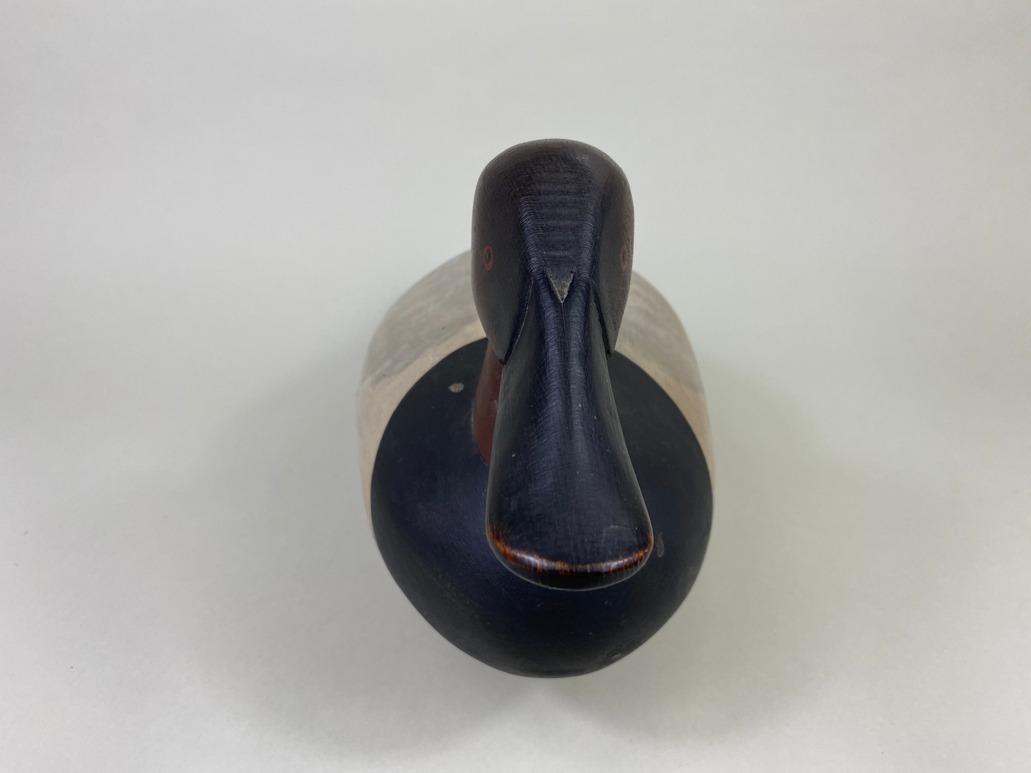 Pratt Canvasback Drake Seneca Lake Model, Joliet, Illinois. Glass eyes, solid body, dry original paint, circa 1930's, has some paint flaking, a wood knot on right side, and minor wear. ...