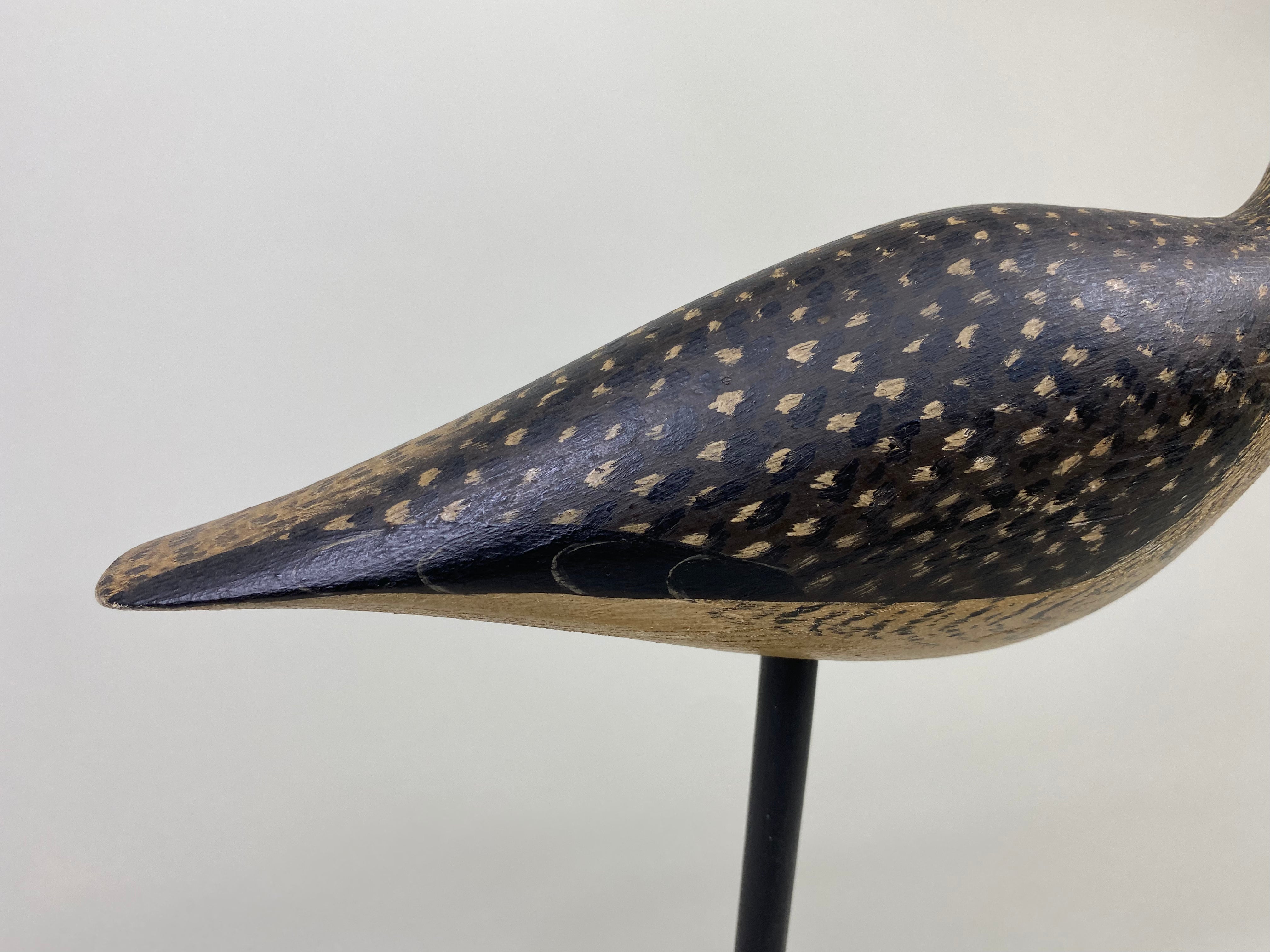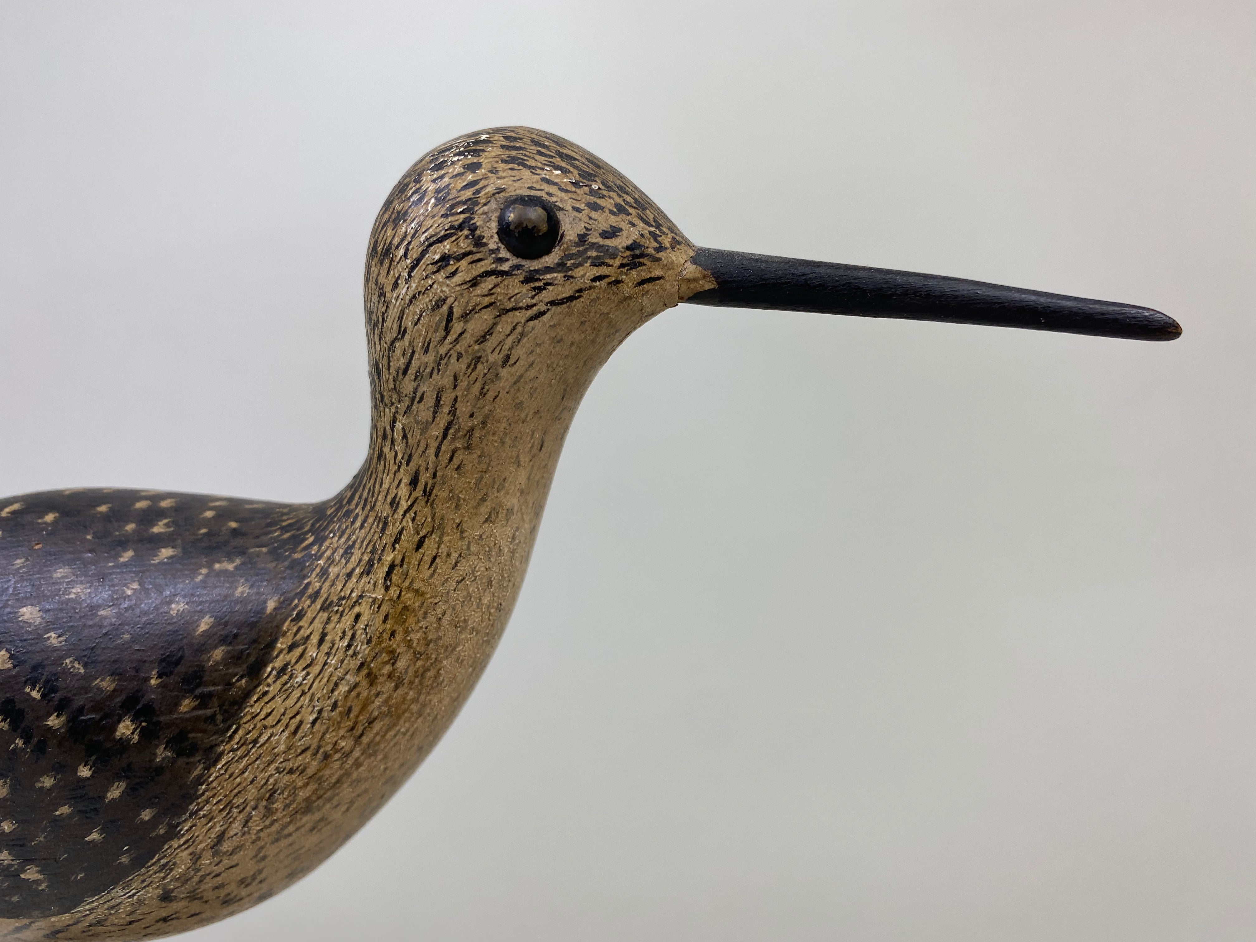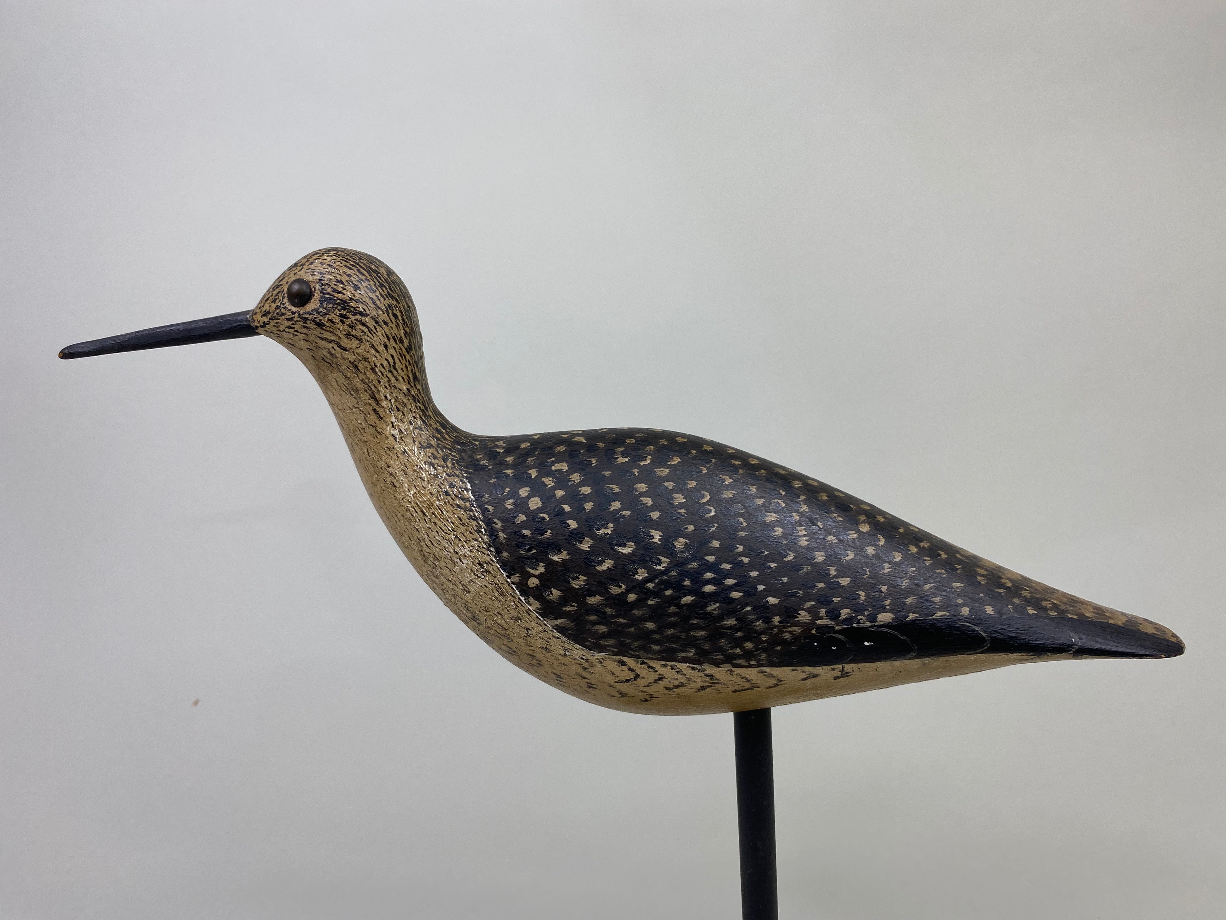 John Hillman Yellow Legs, Seagirt, New Jersey. All original, excellent, gunning bird style, wooden beak, signed and dated on bottom, wooden stand included. Decoy measures 11" from beak to tail,...