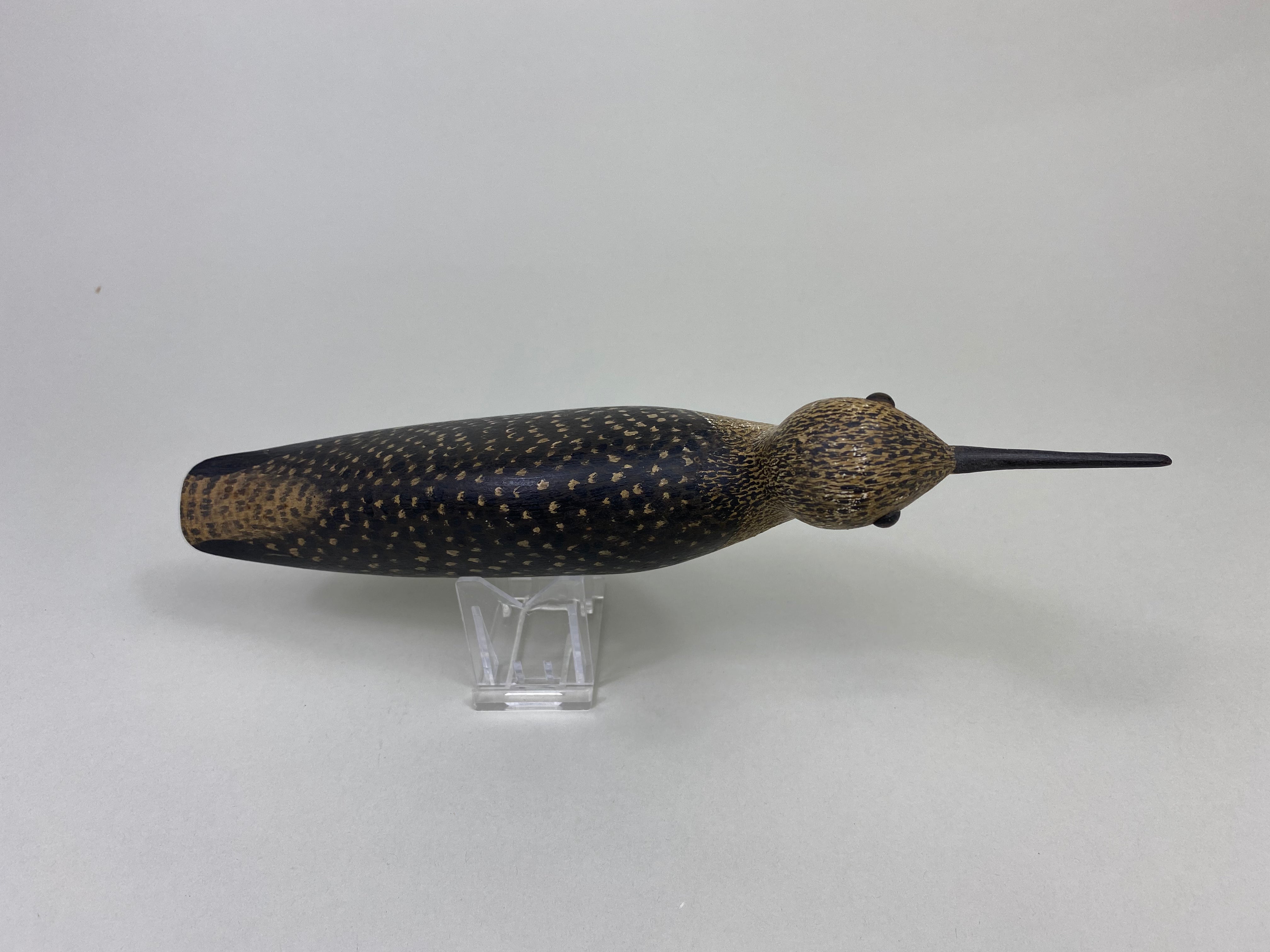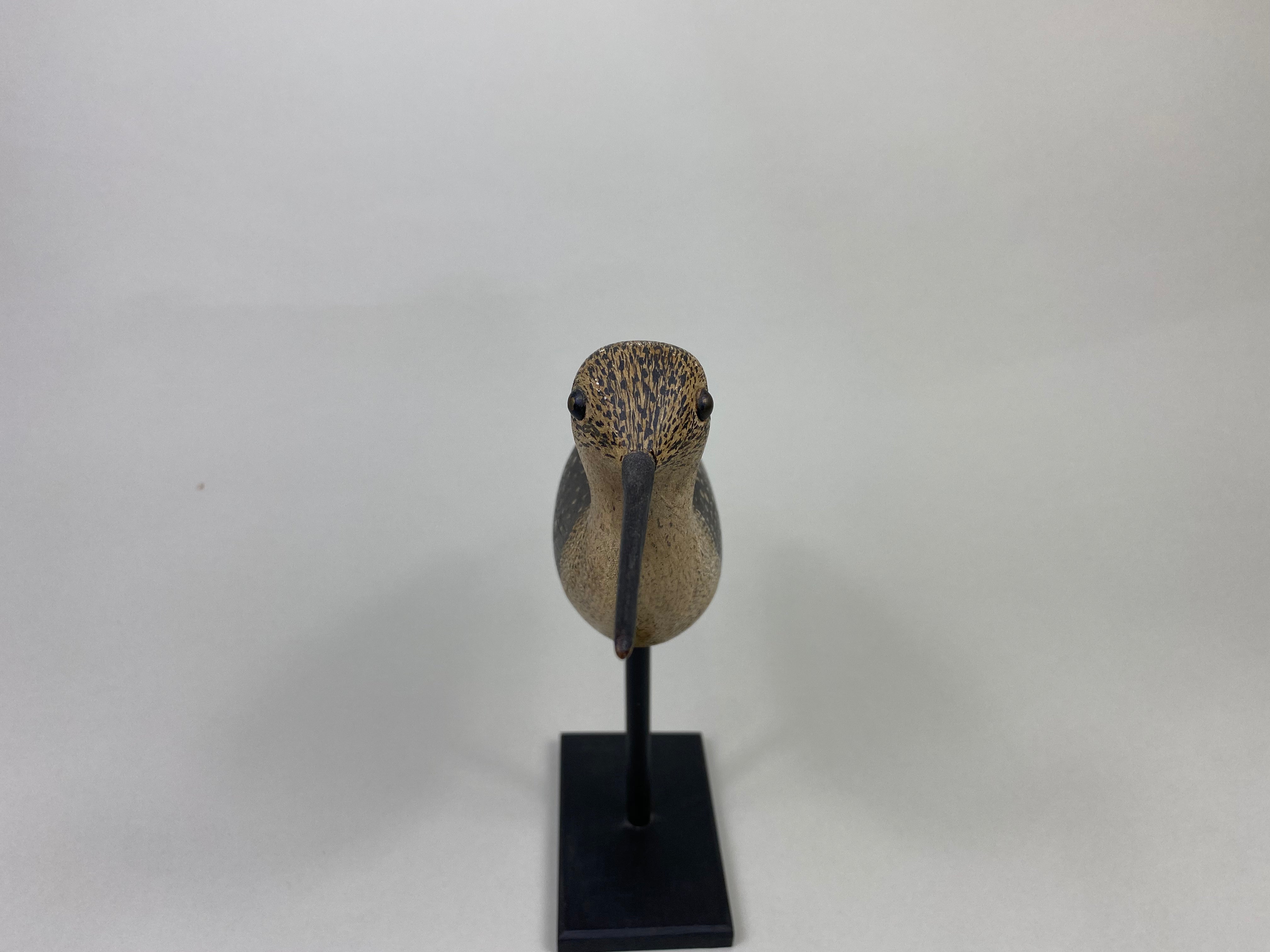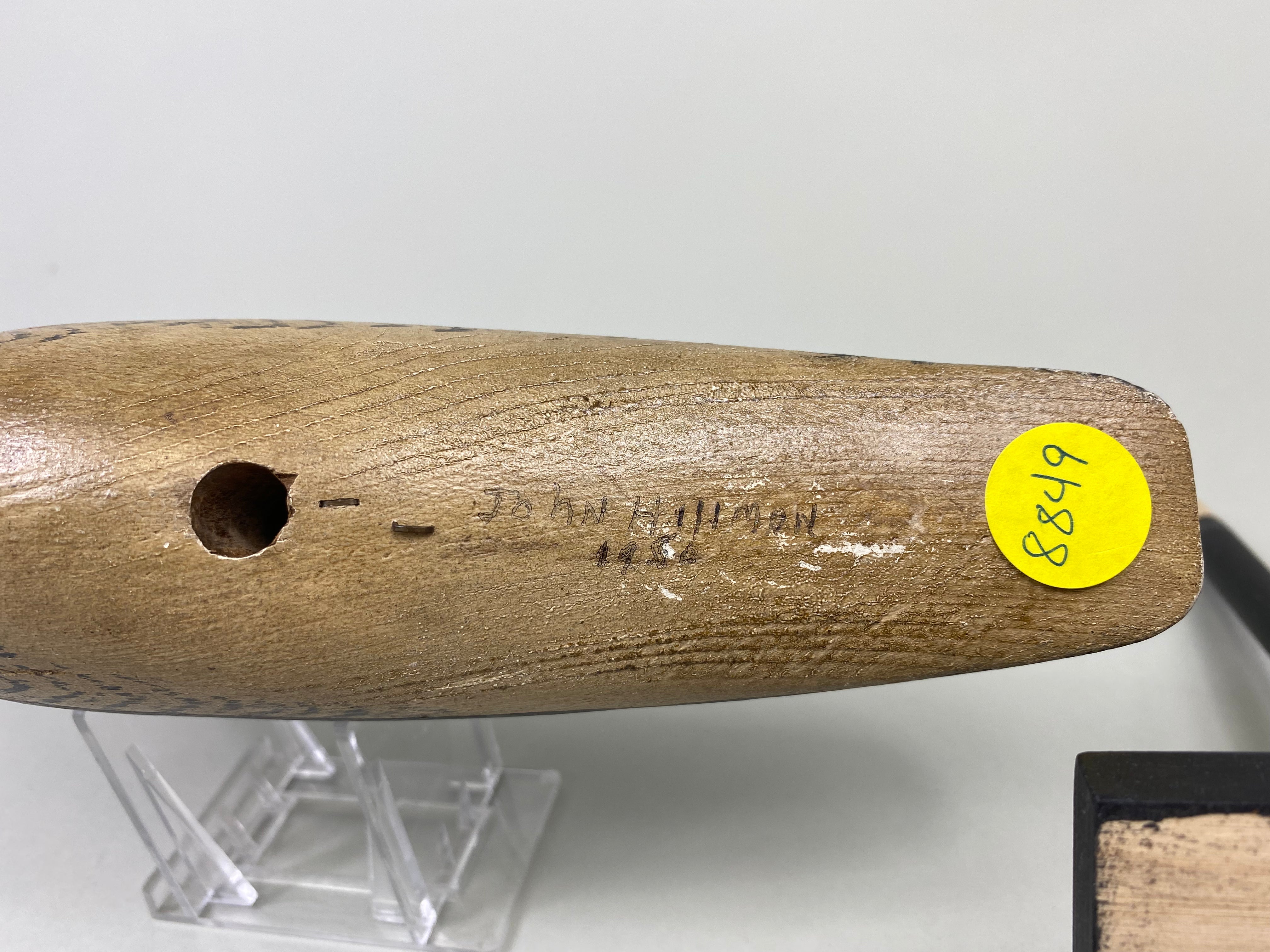 John Hillman Yellow Legs, Seagirt, New Jersey. All original, excellent, gunning bird style, wooden beak, signed and dated on bottom, wooden stand included. Decoy measures 11" from beak to tail,...