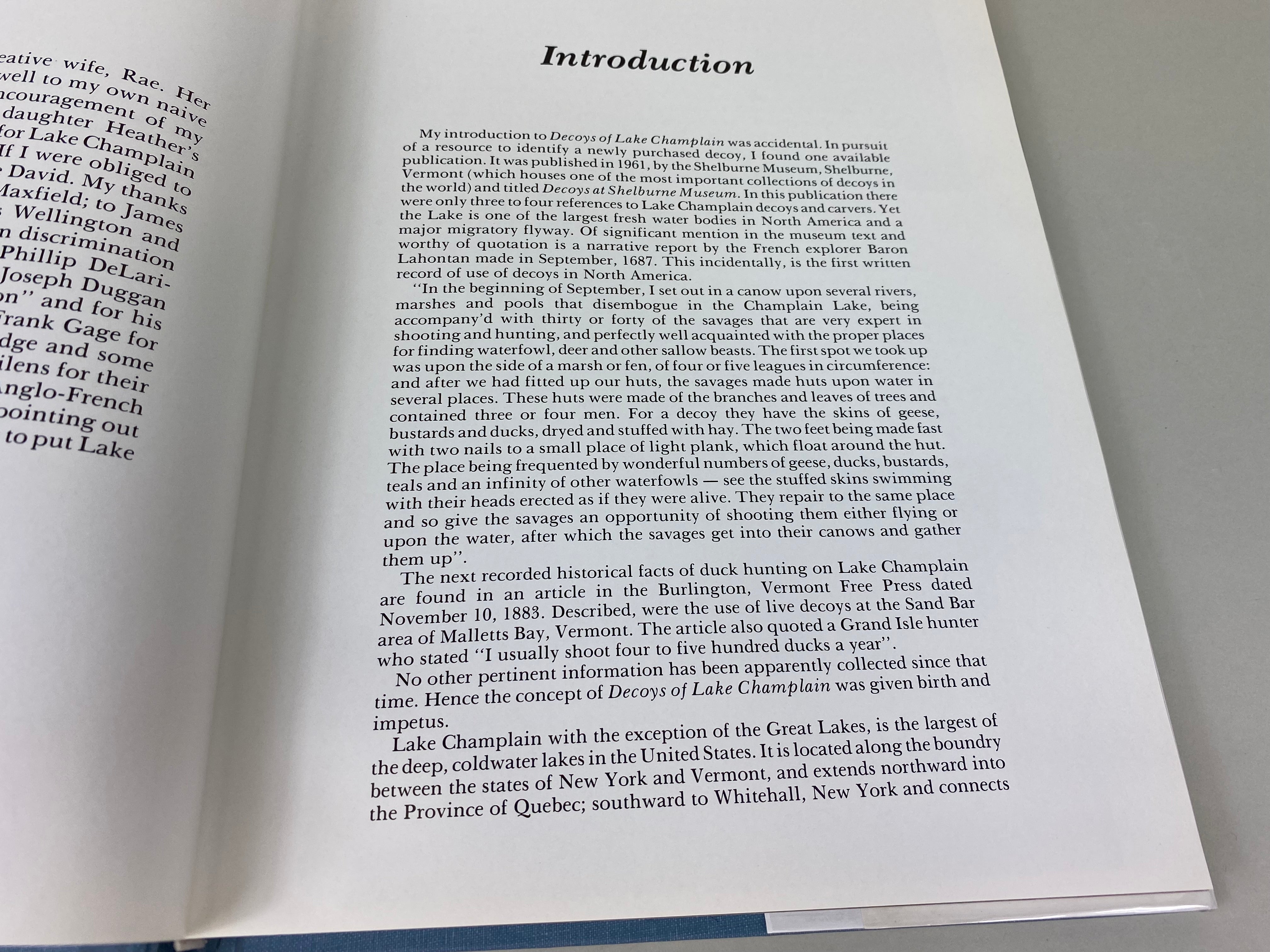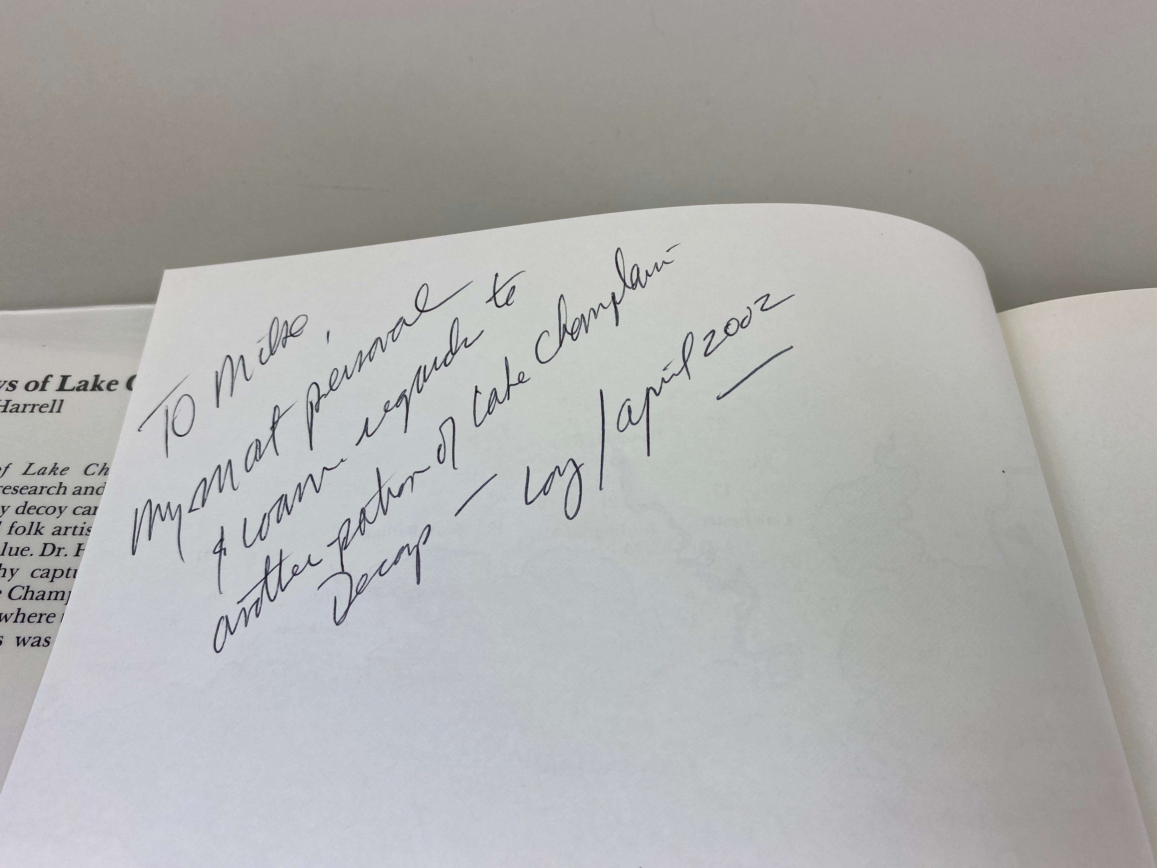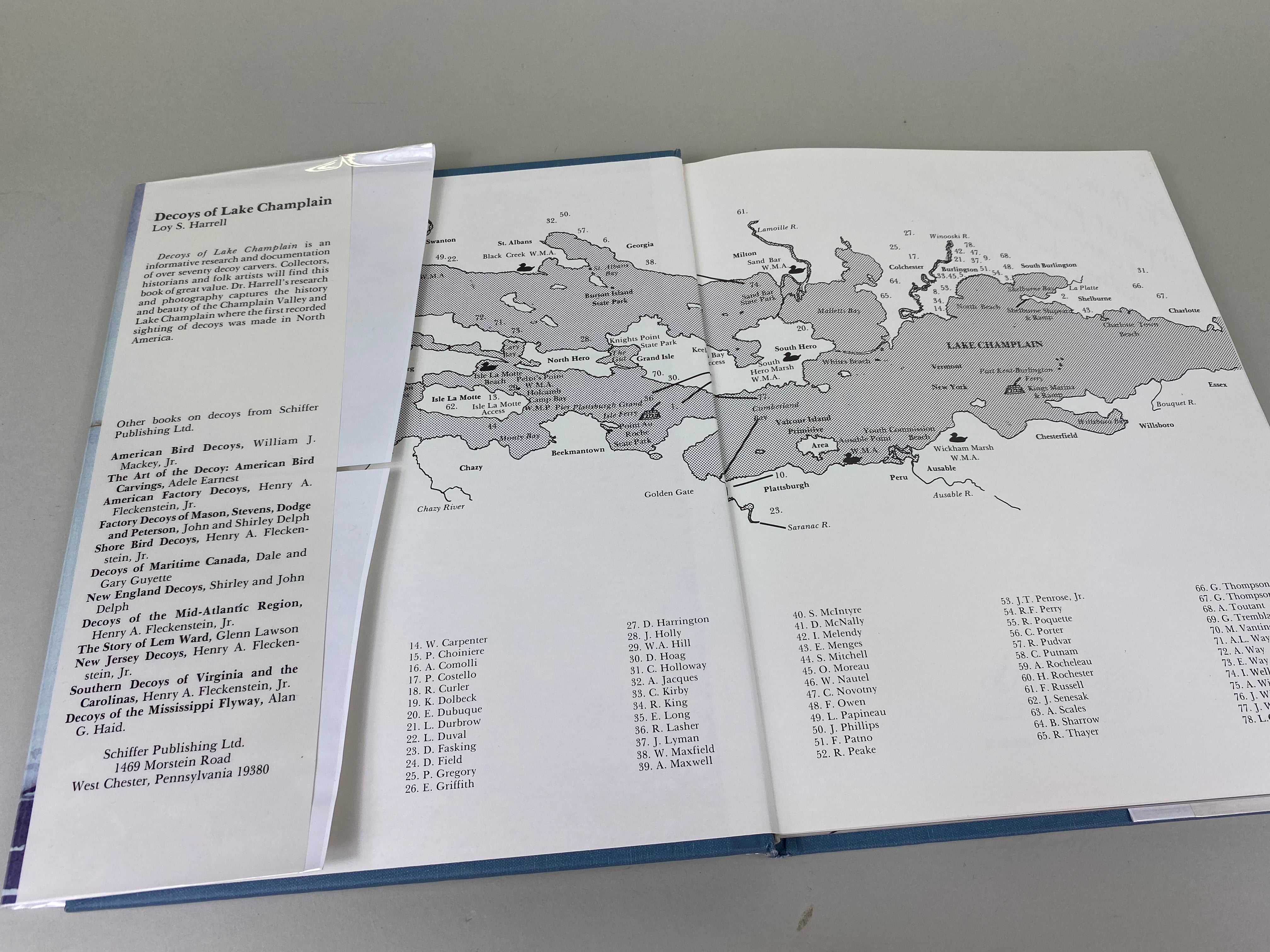 Decoys of Lake Champlain by Dr. Loy S. Harrell. This 136 page hard cover book is an informative research and documentation of over seventy decoy carvers. Book is in goood...