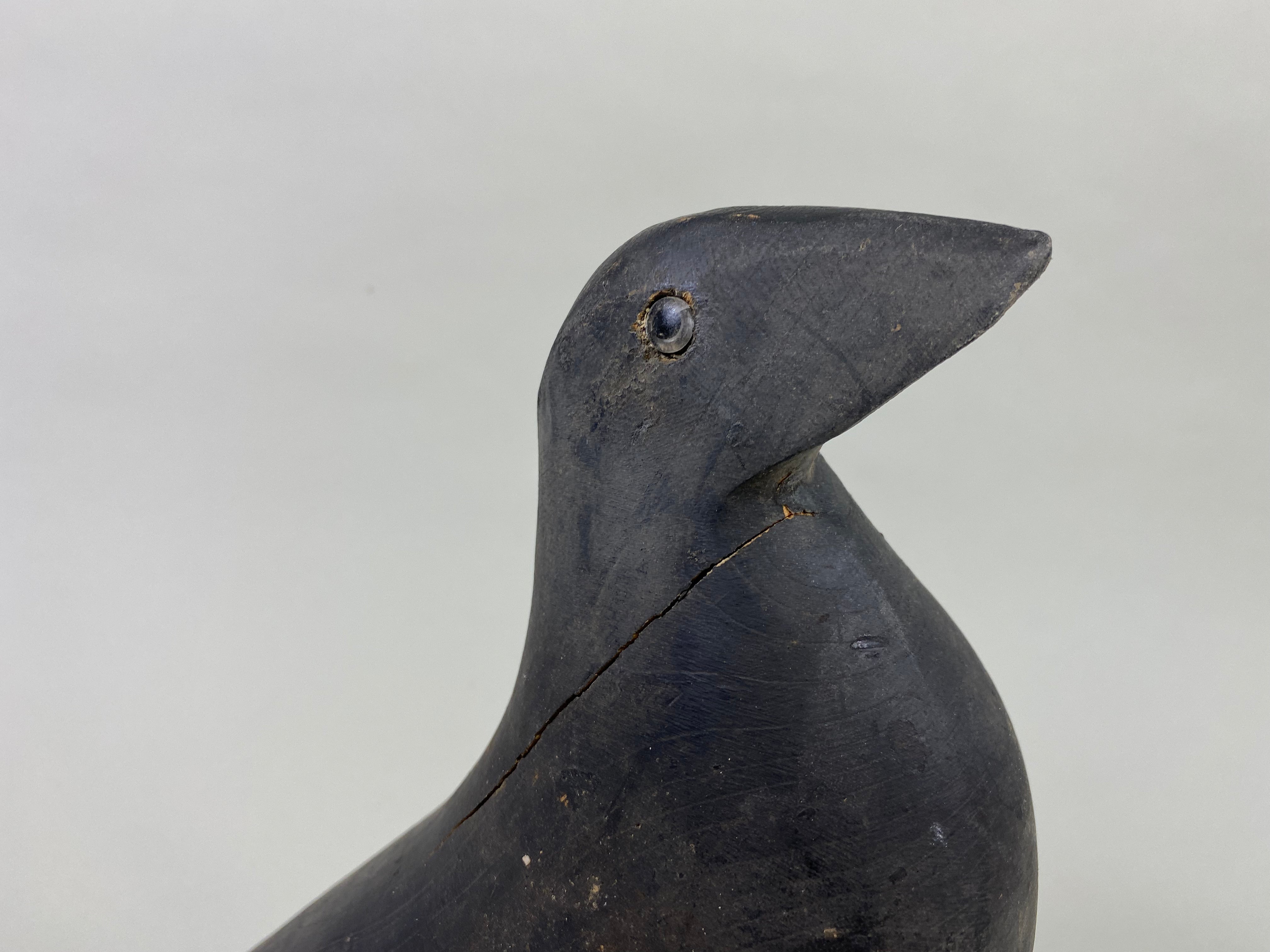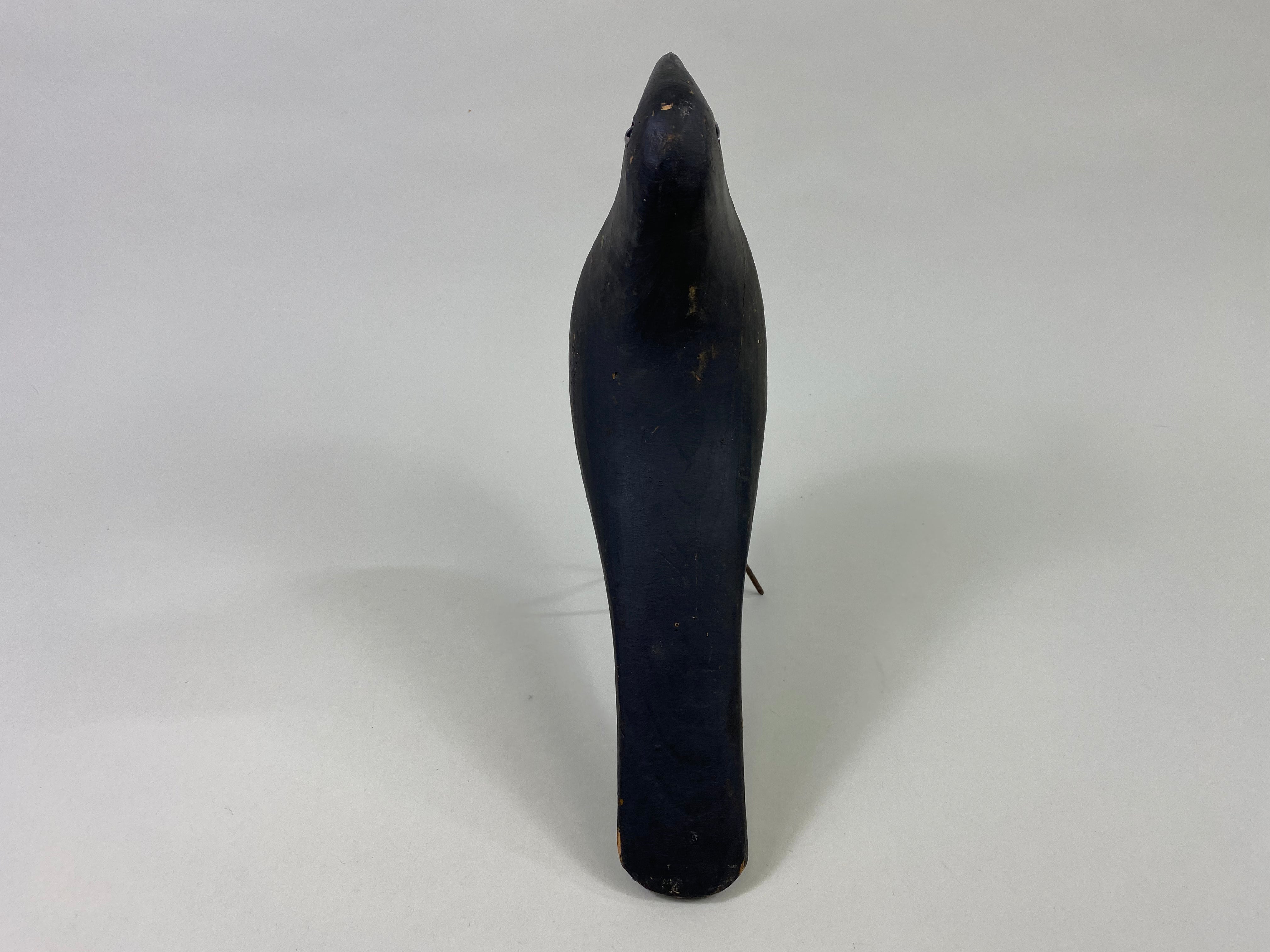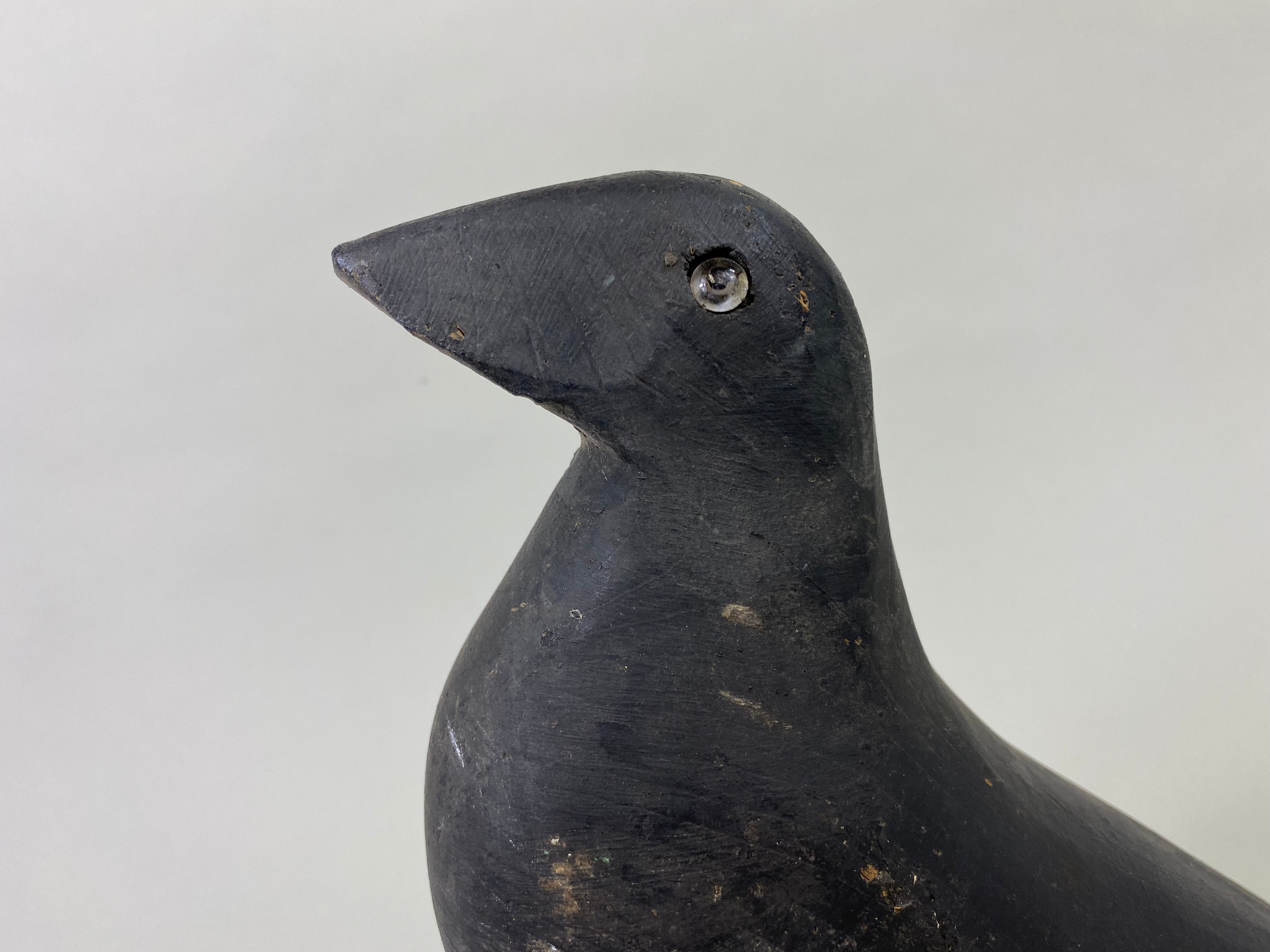 Rare Pratt factory Crow, Joliet, Illinois. Circa 1930's, original paint, metal legs, solid body with age crack on right. Decoy has some hunting wear from use. Measures 14" from head...