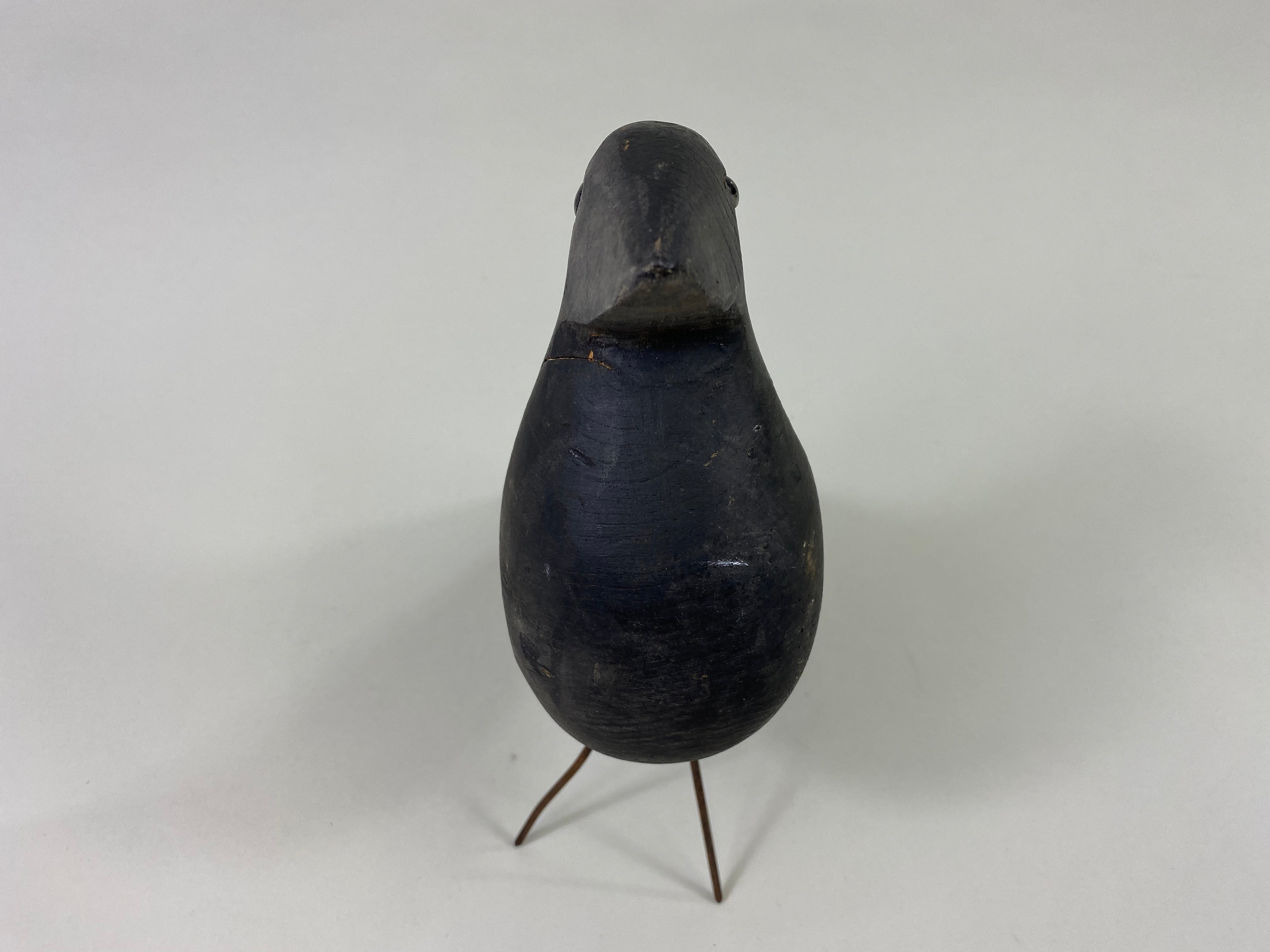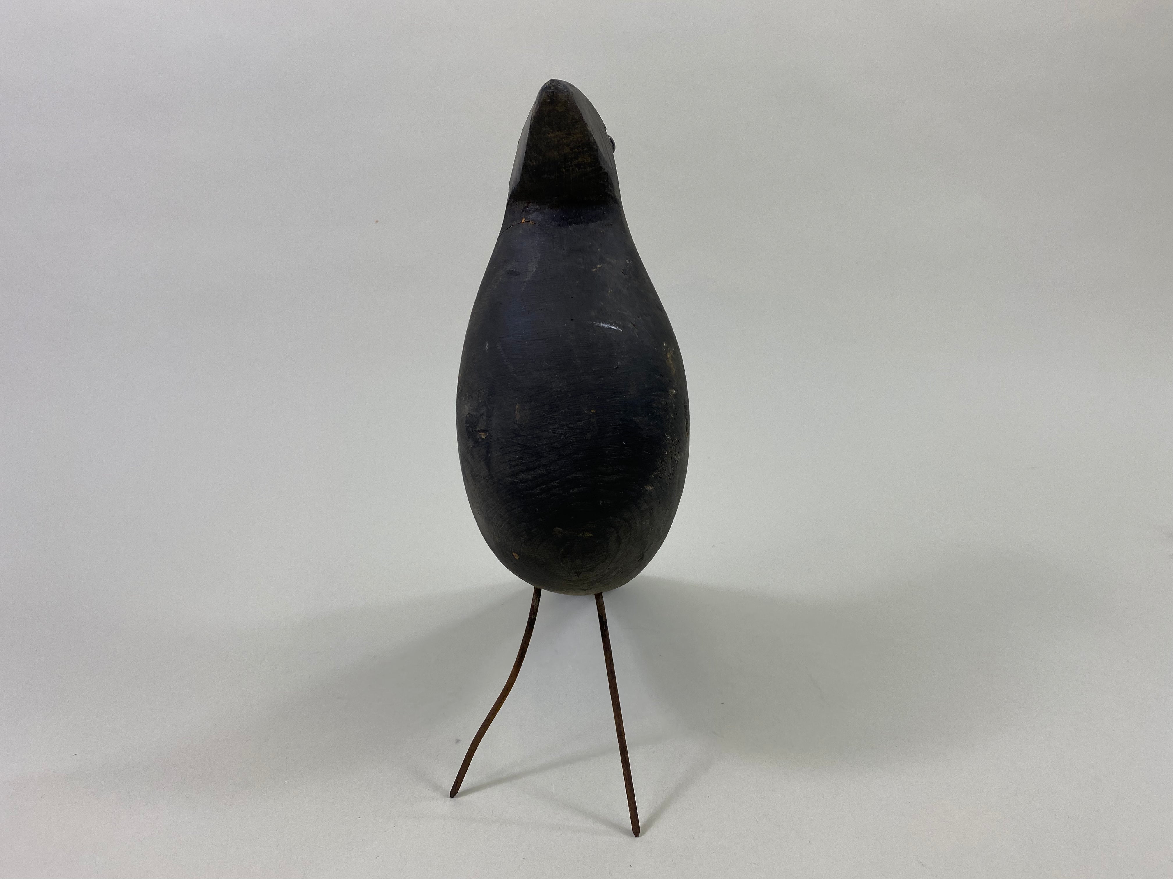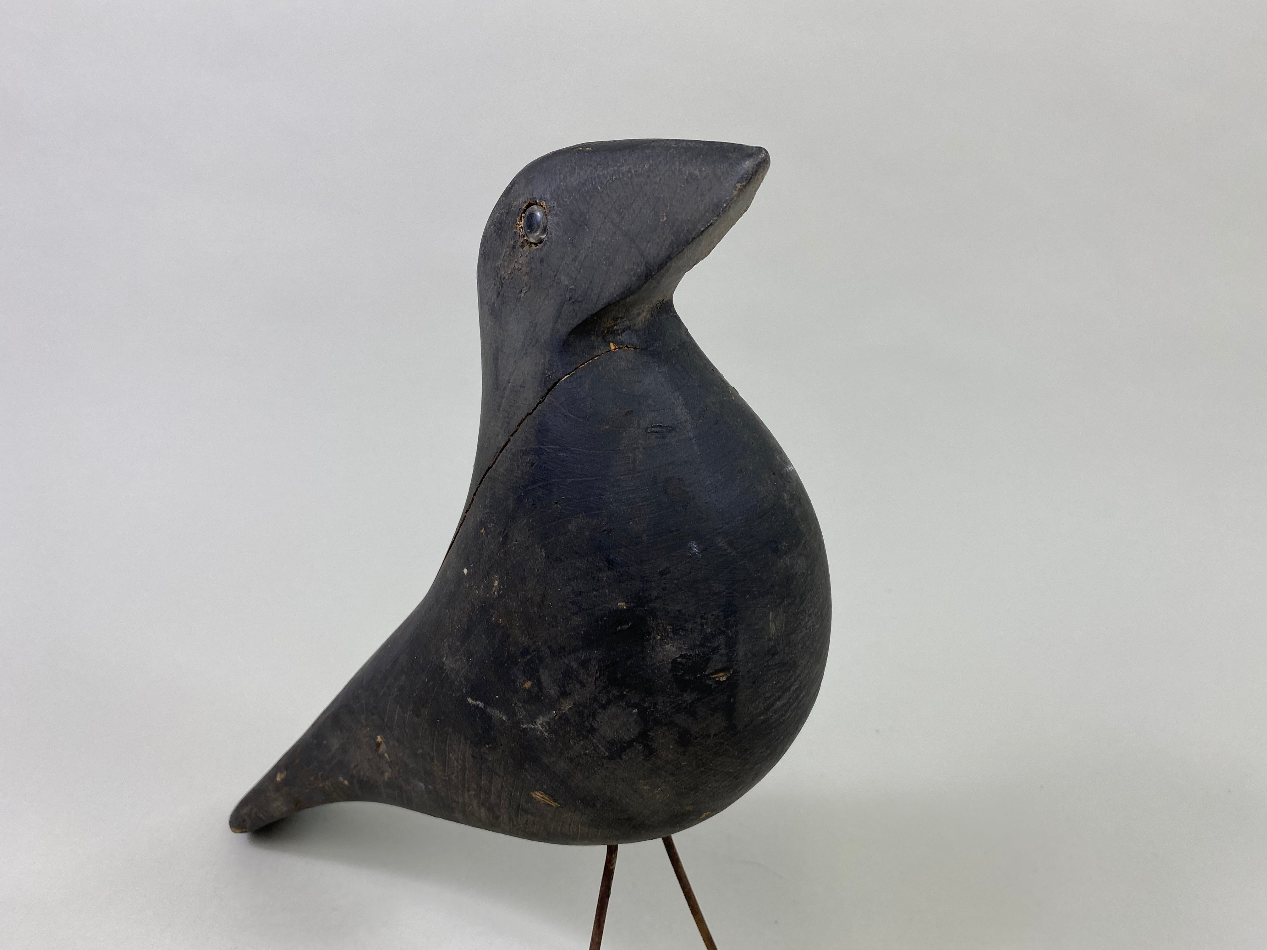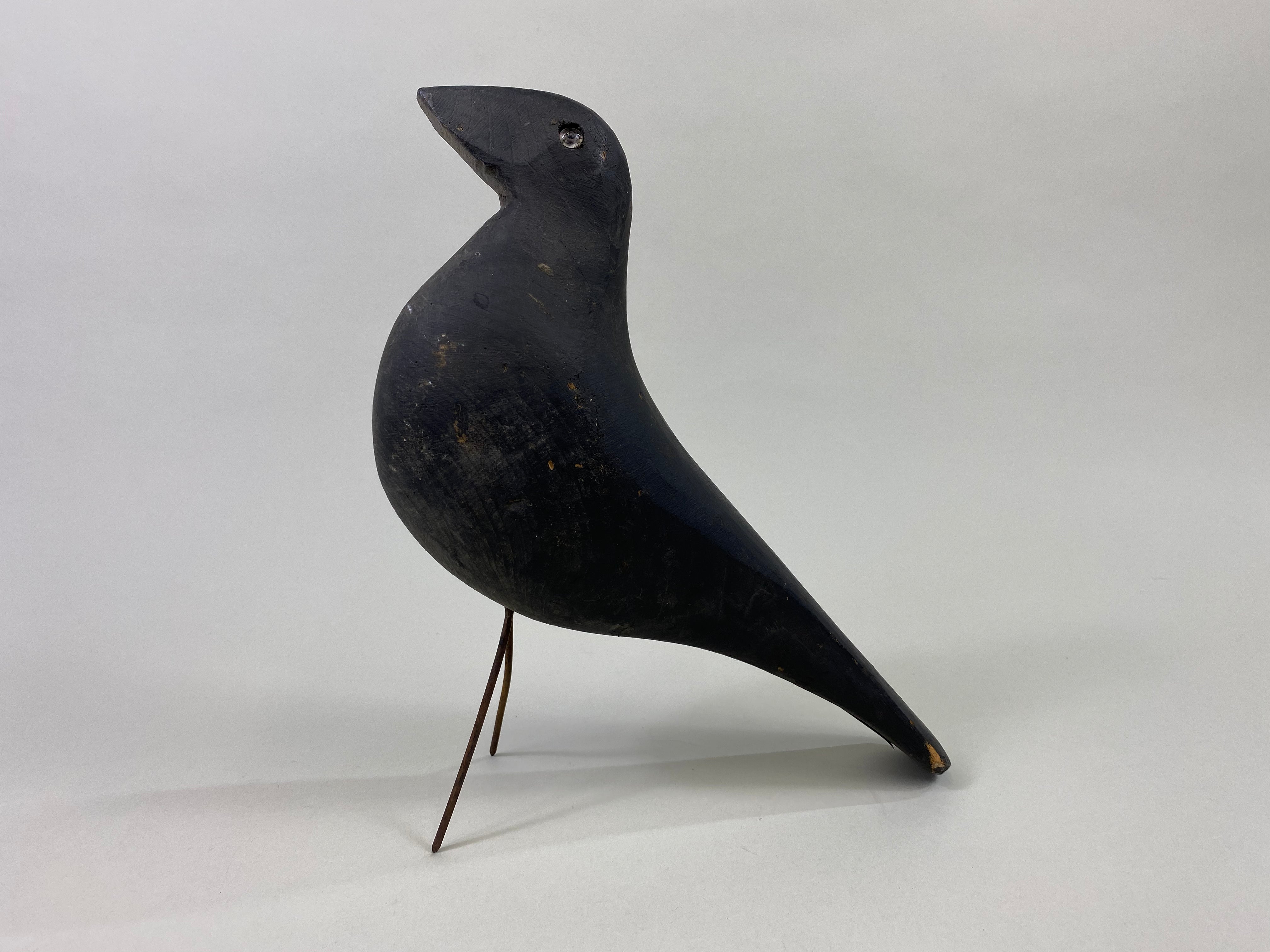 Rare Pratt factory Crow, Joliet, Illinois. Circa 1930's, original paint, metal legs, solid body with age crack on right. Decoy has some hunting wear from use. Measures 14" from head...
