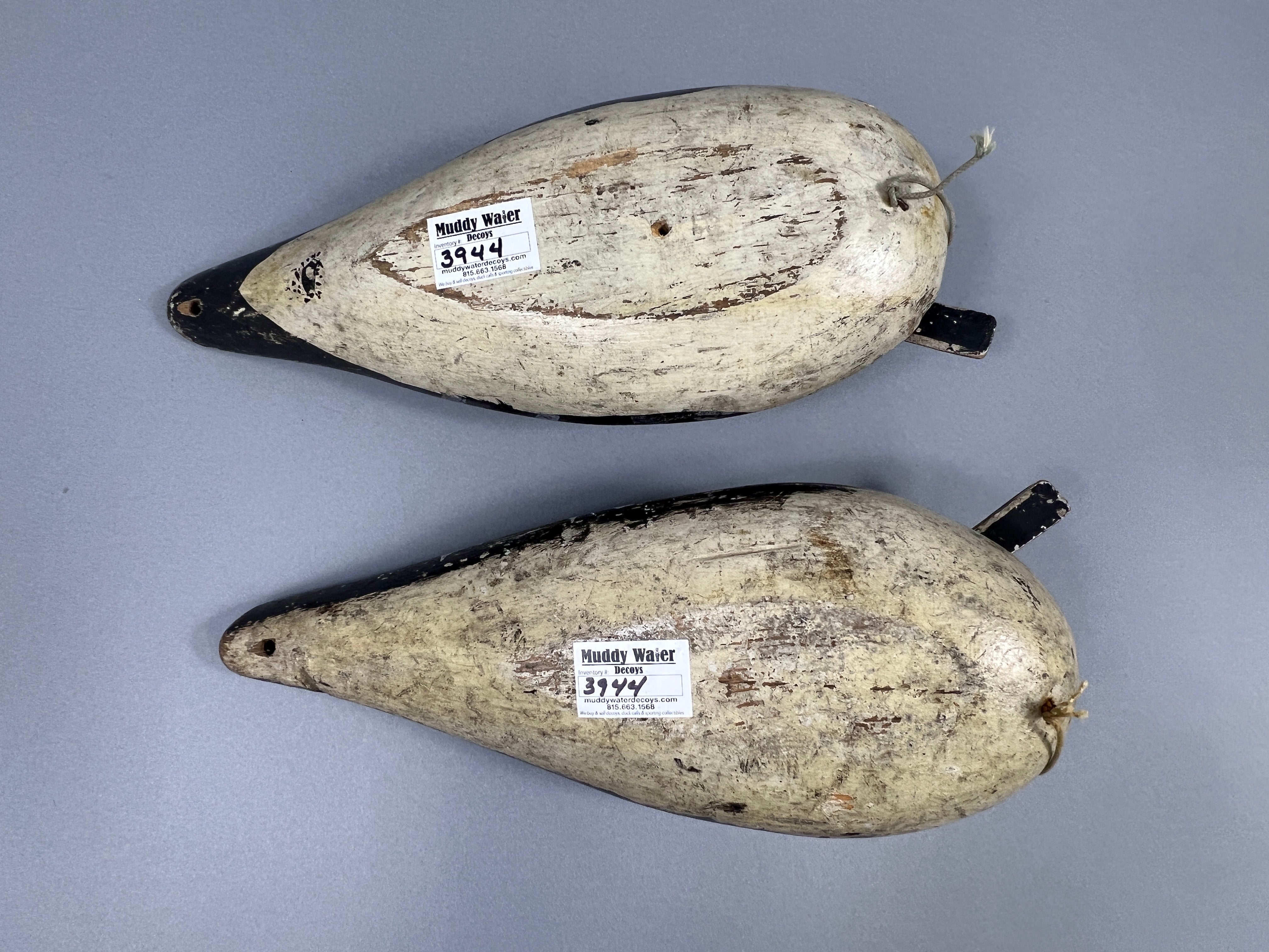 Pair of Frederick "Rick" Brown Canvasback, Ocean City, New Jersey. Near mint condition, this pair is very nicely done with glass eyes, hollow bodies, sleeper hen, all original with carver's...