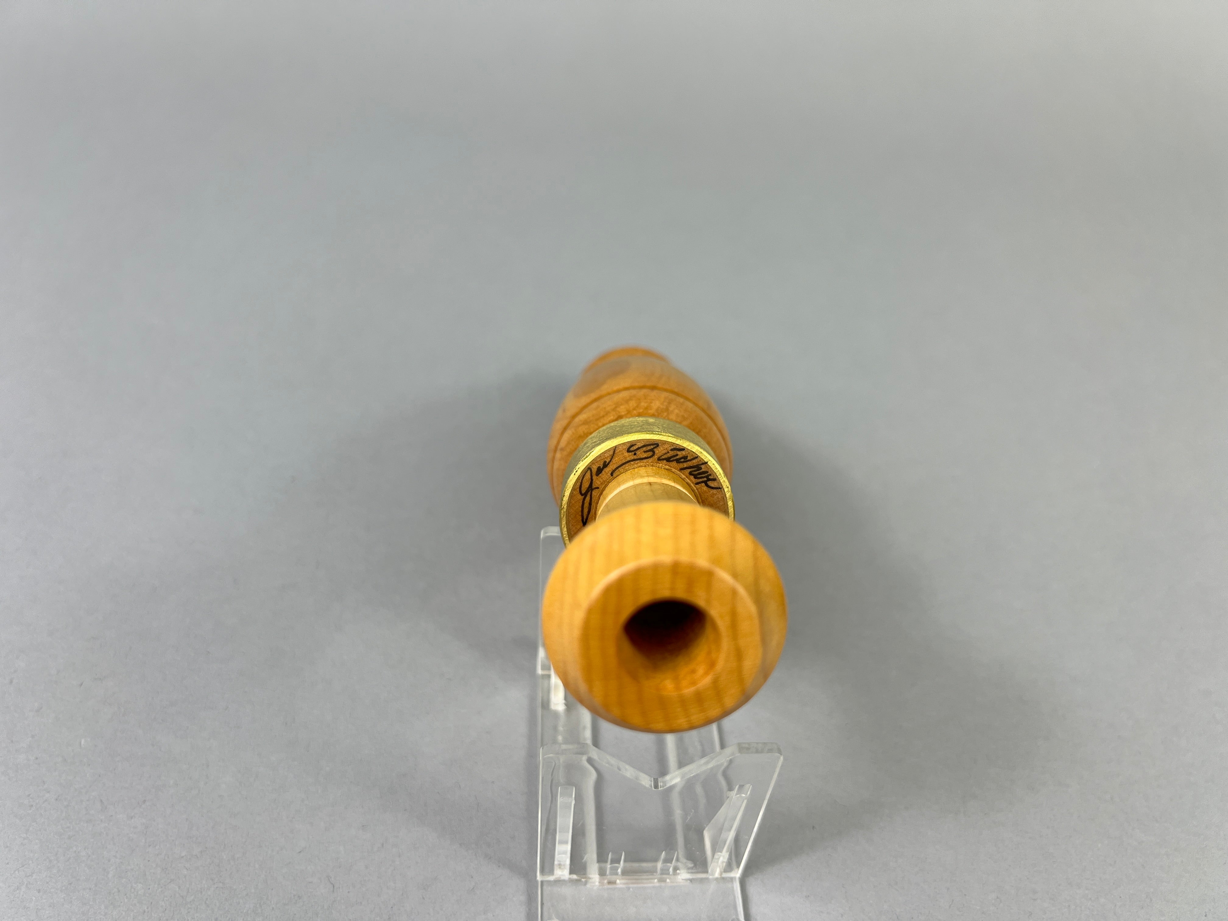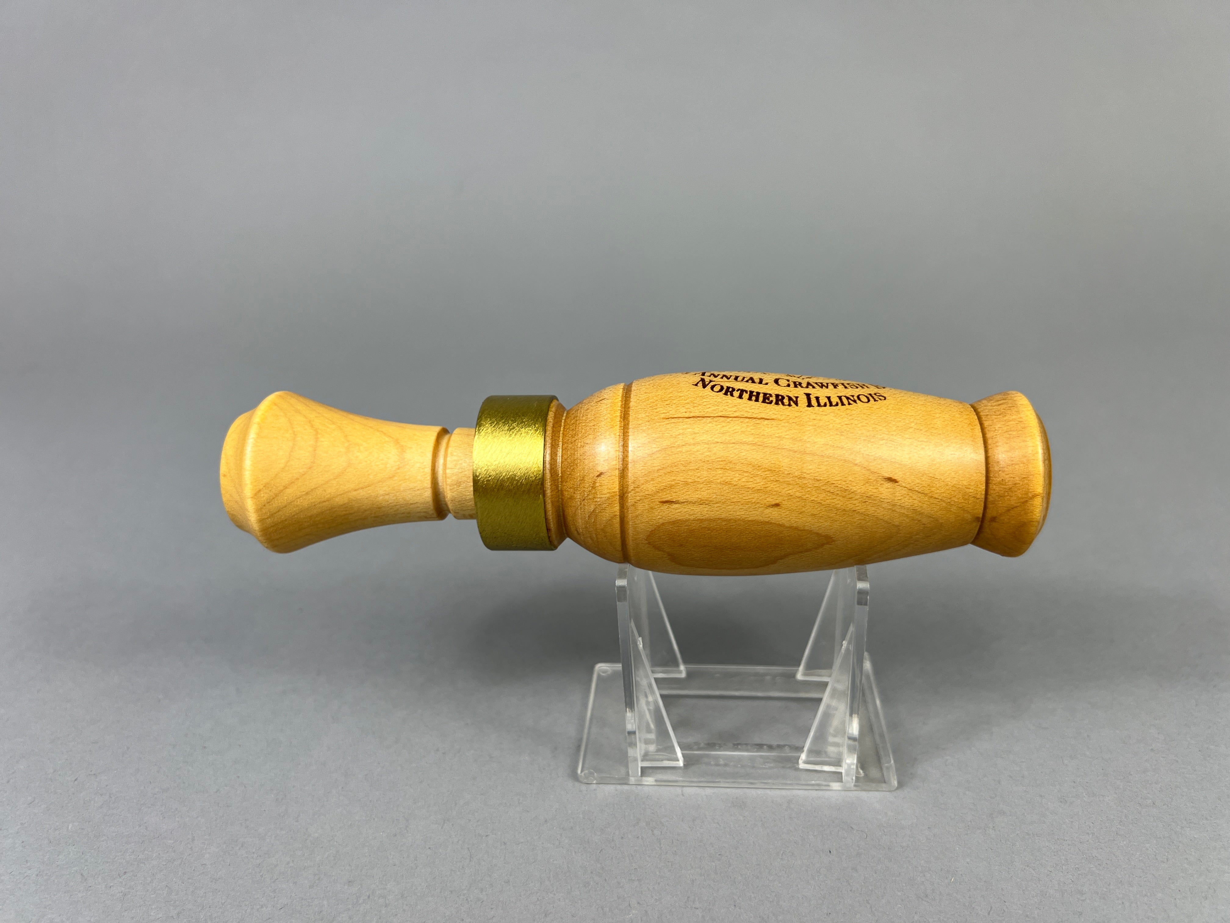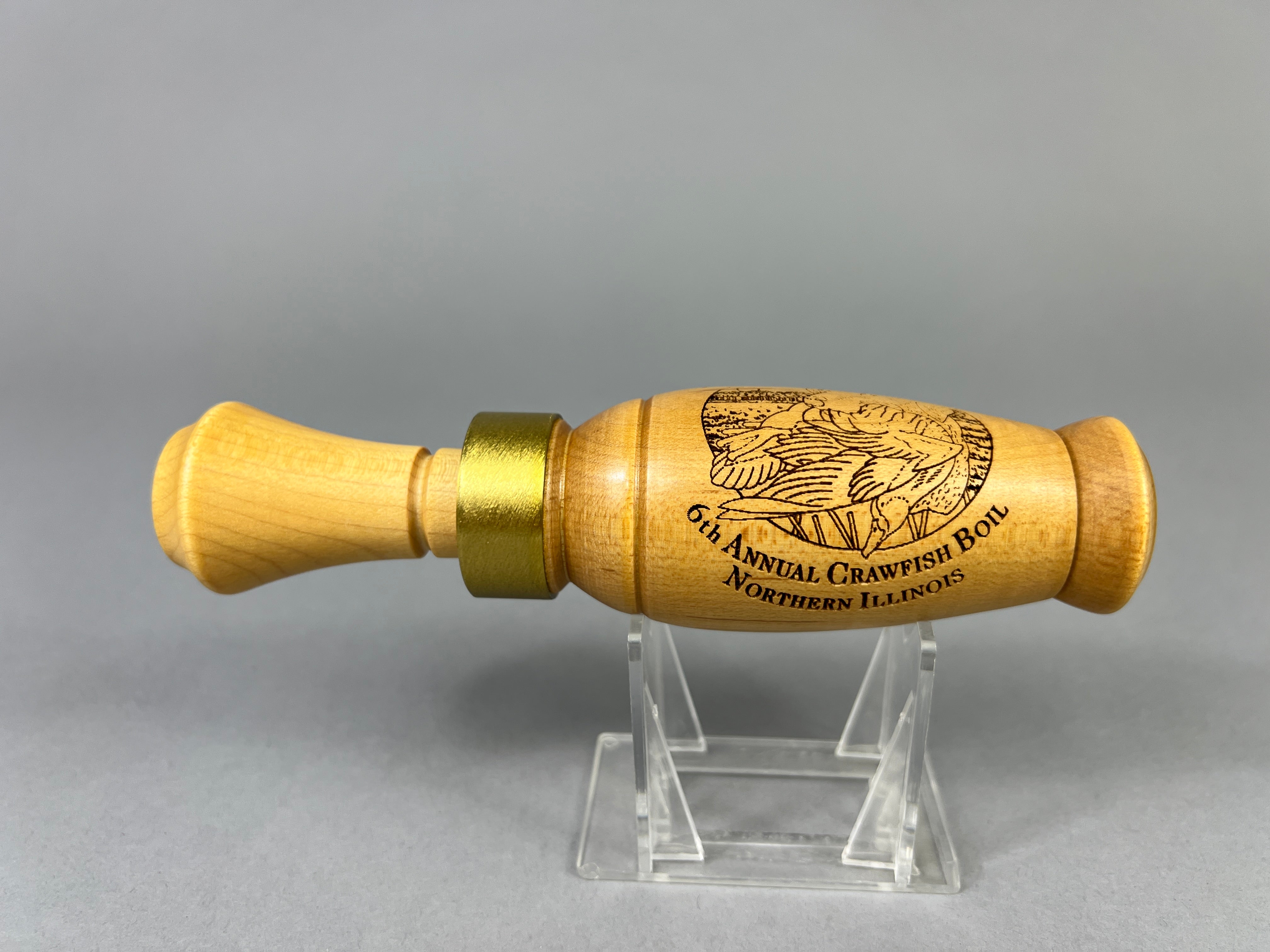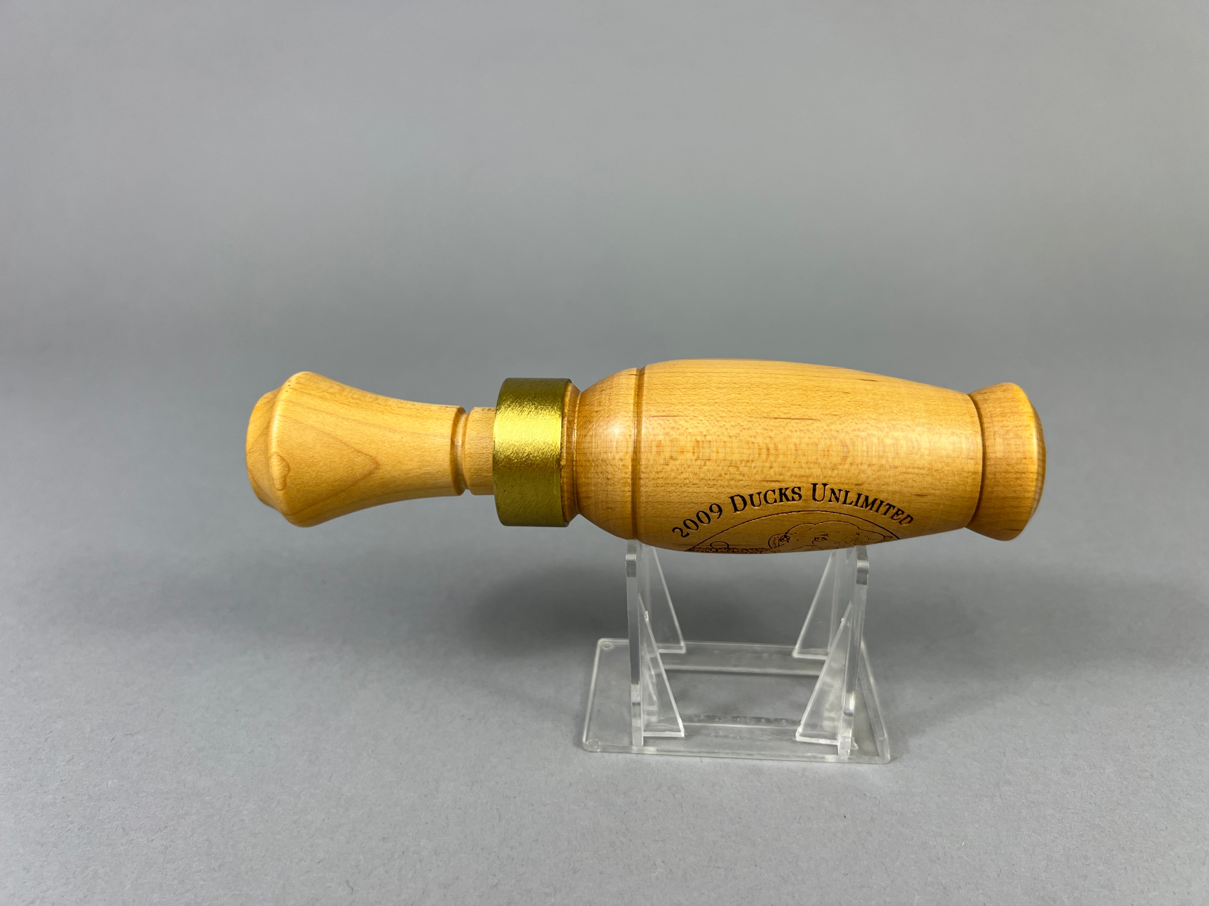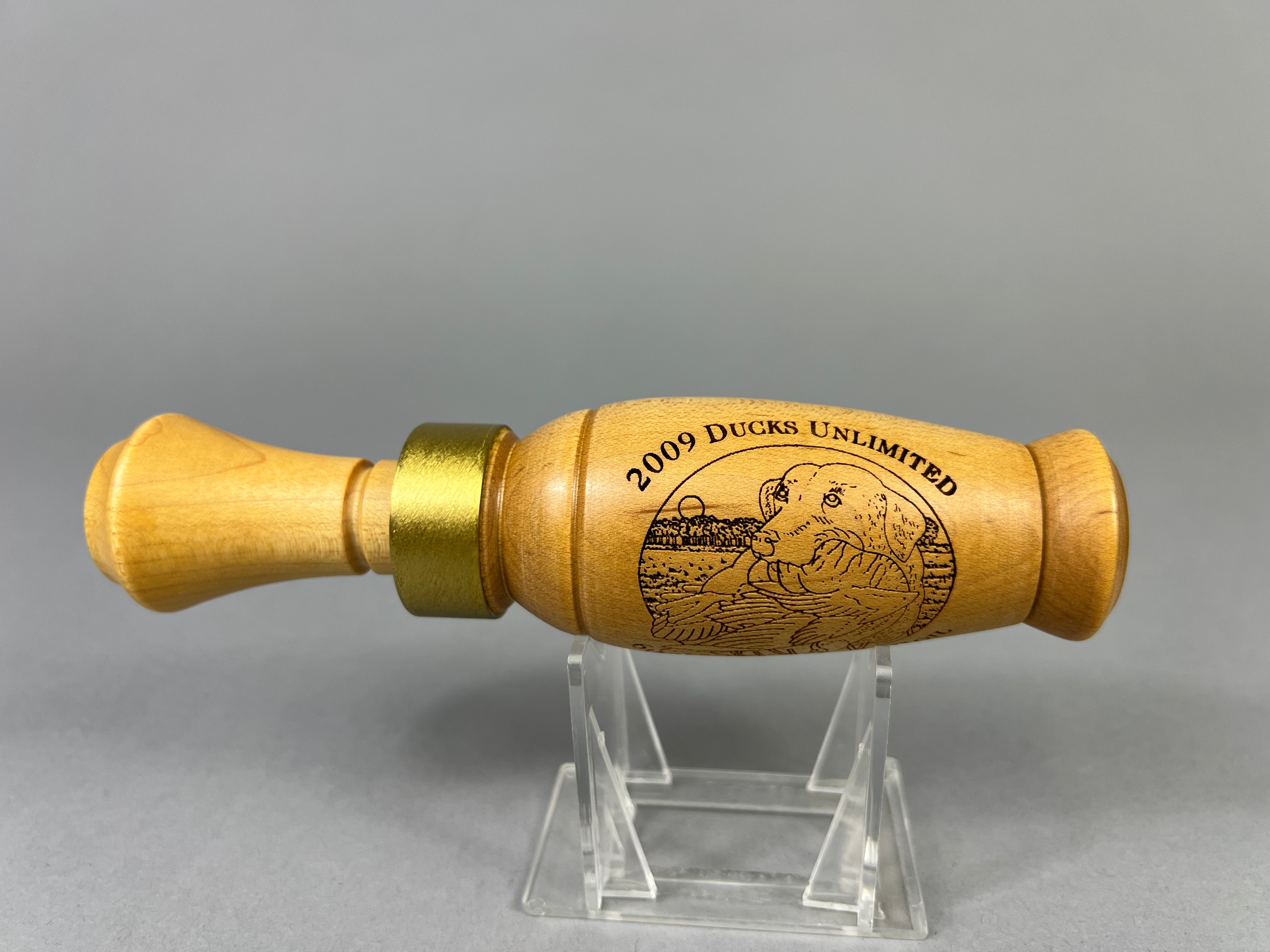 2009 Ducks Unlimited Duck Call. 6th Annual Crawfish Boil Northern Illinois. Like new condition, very nice detail carving, Signed Jim Bucher on top of barrel, and brass brand. Box included.