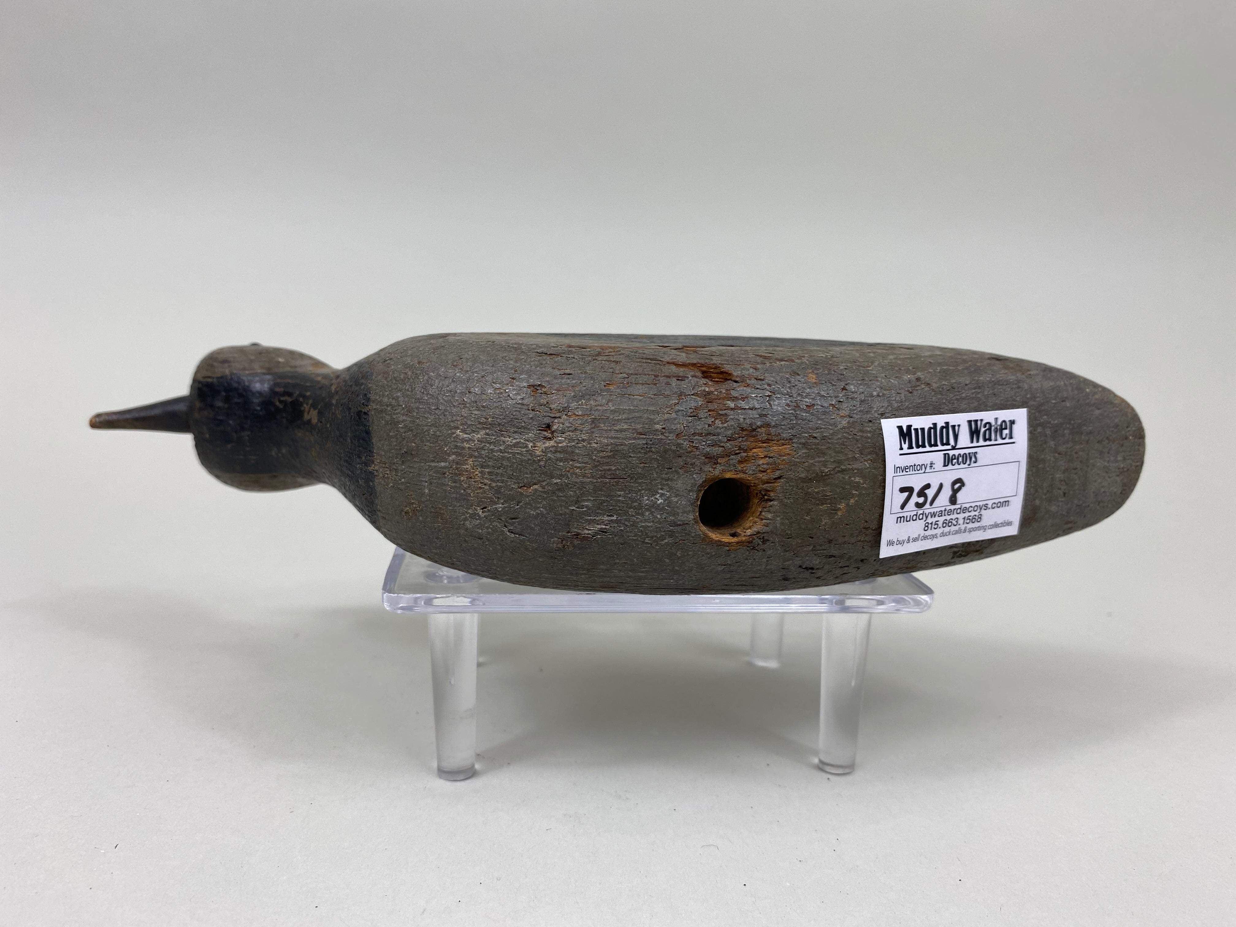 Unknown New Jersey Shorebird. Mostly original paint, circa 1890's, metal stand, has some bee-bee marks and some hunting wear, blunted bill, hole in body for carrying the rig, carved split...