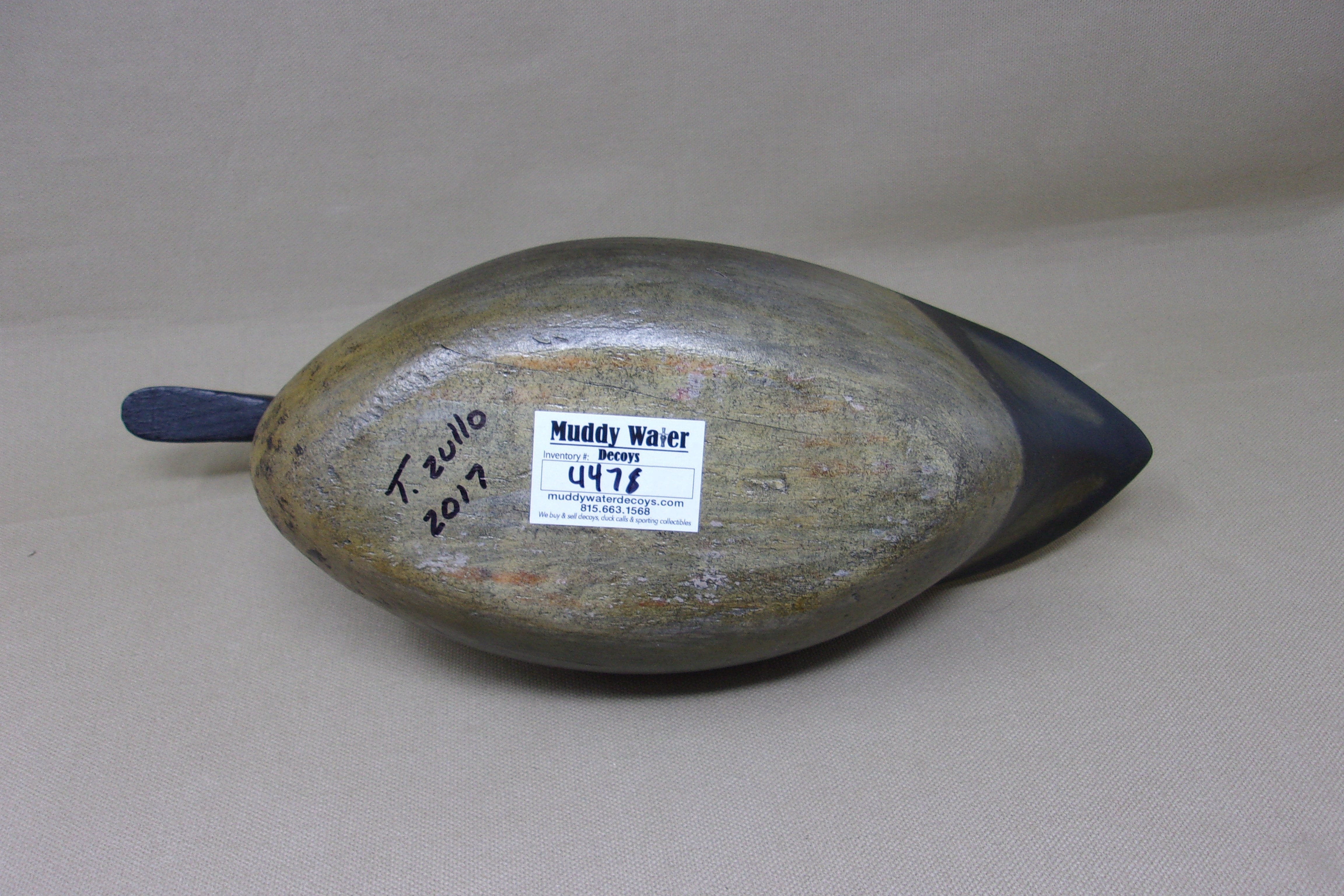 Tony Zullo, Charles Walker Style High Headed Green Wing Teal.  Glass eyes, slightly raised wing, Morris Illinois 2017.  Decoy measures 12-1/2" long, 4" wide, and 6-1/2" tall.