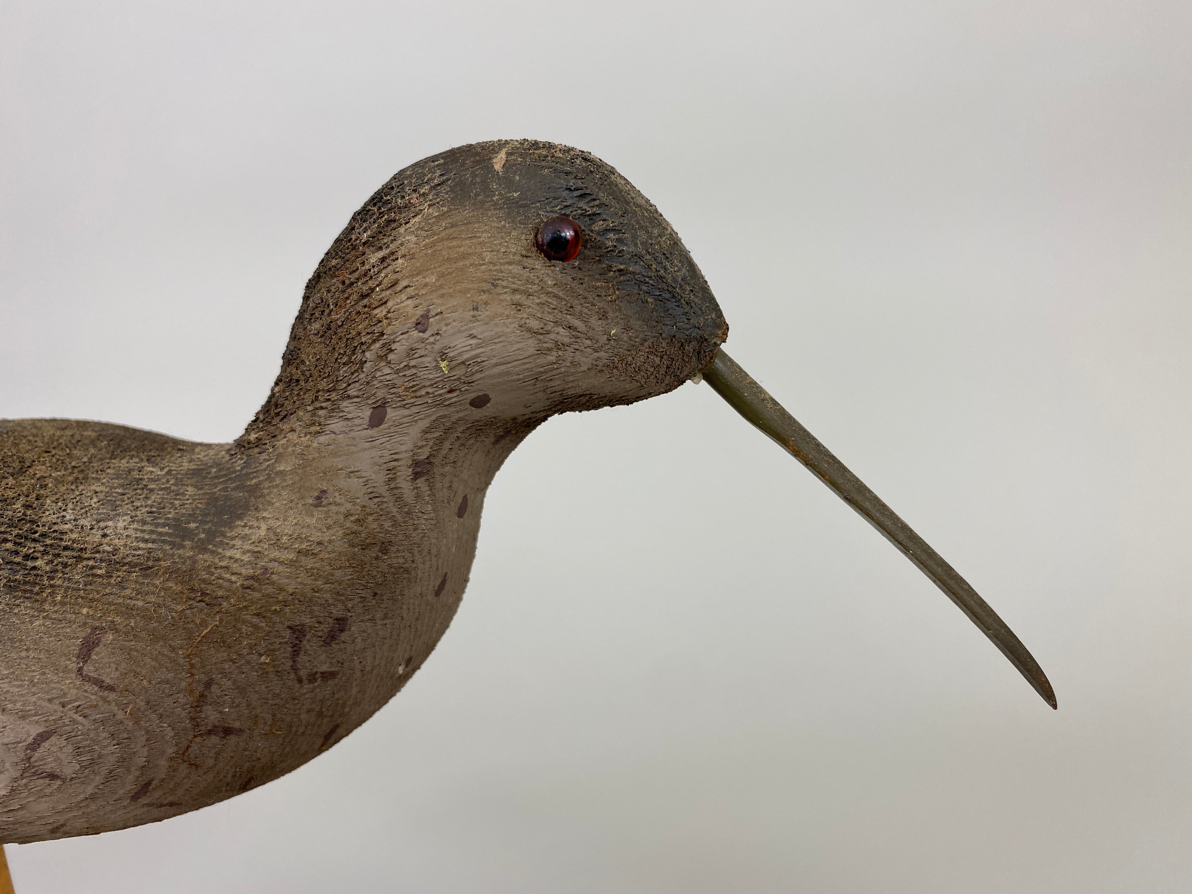 Herters 1893 Series Snipe, Waseca Minnesota. Circa 1960's, glass eyes, original paint, solid body, wooden bill, minor wear, in good condition. Measures 13" from end of bill to tail, 3"...