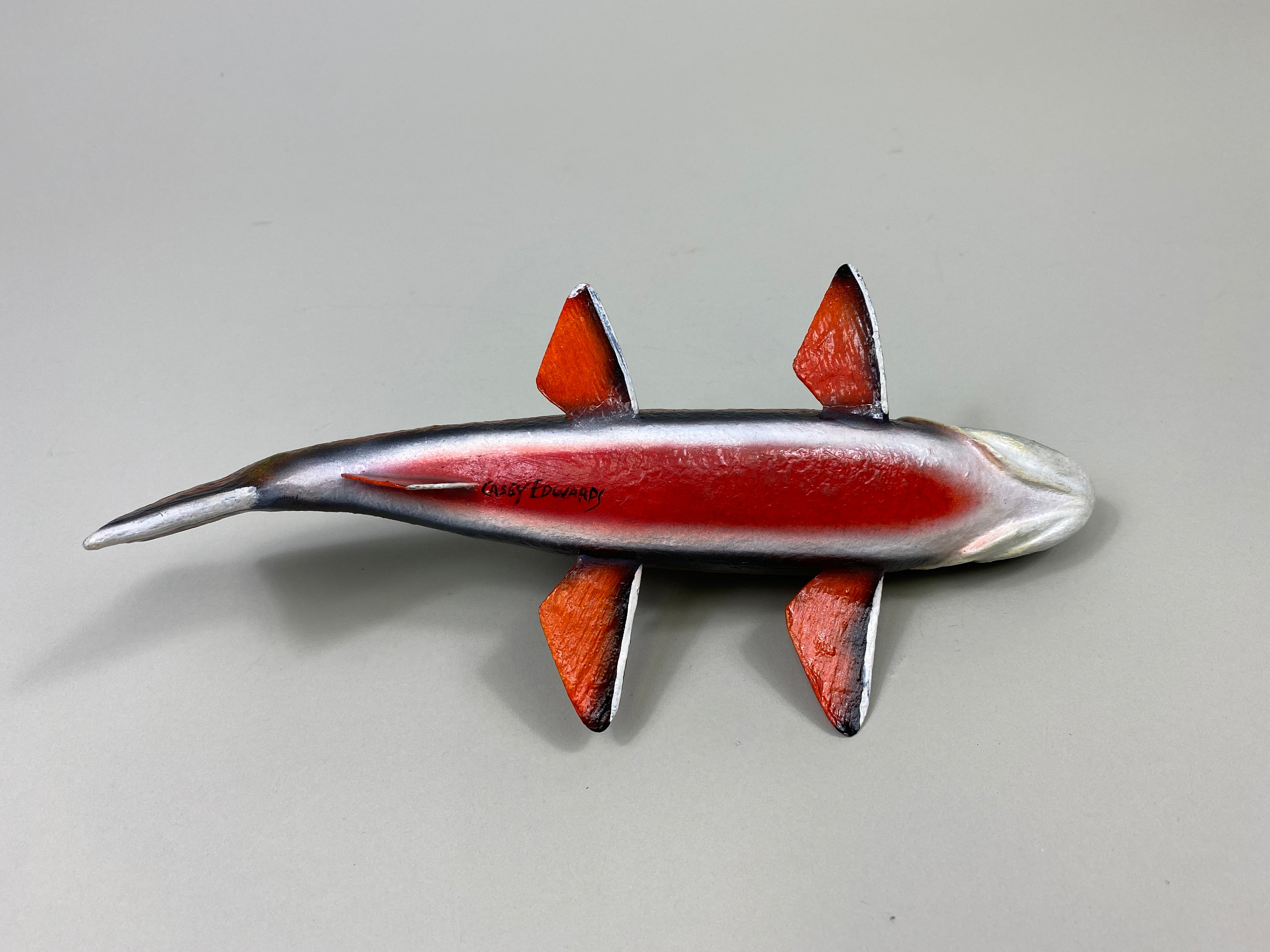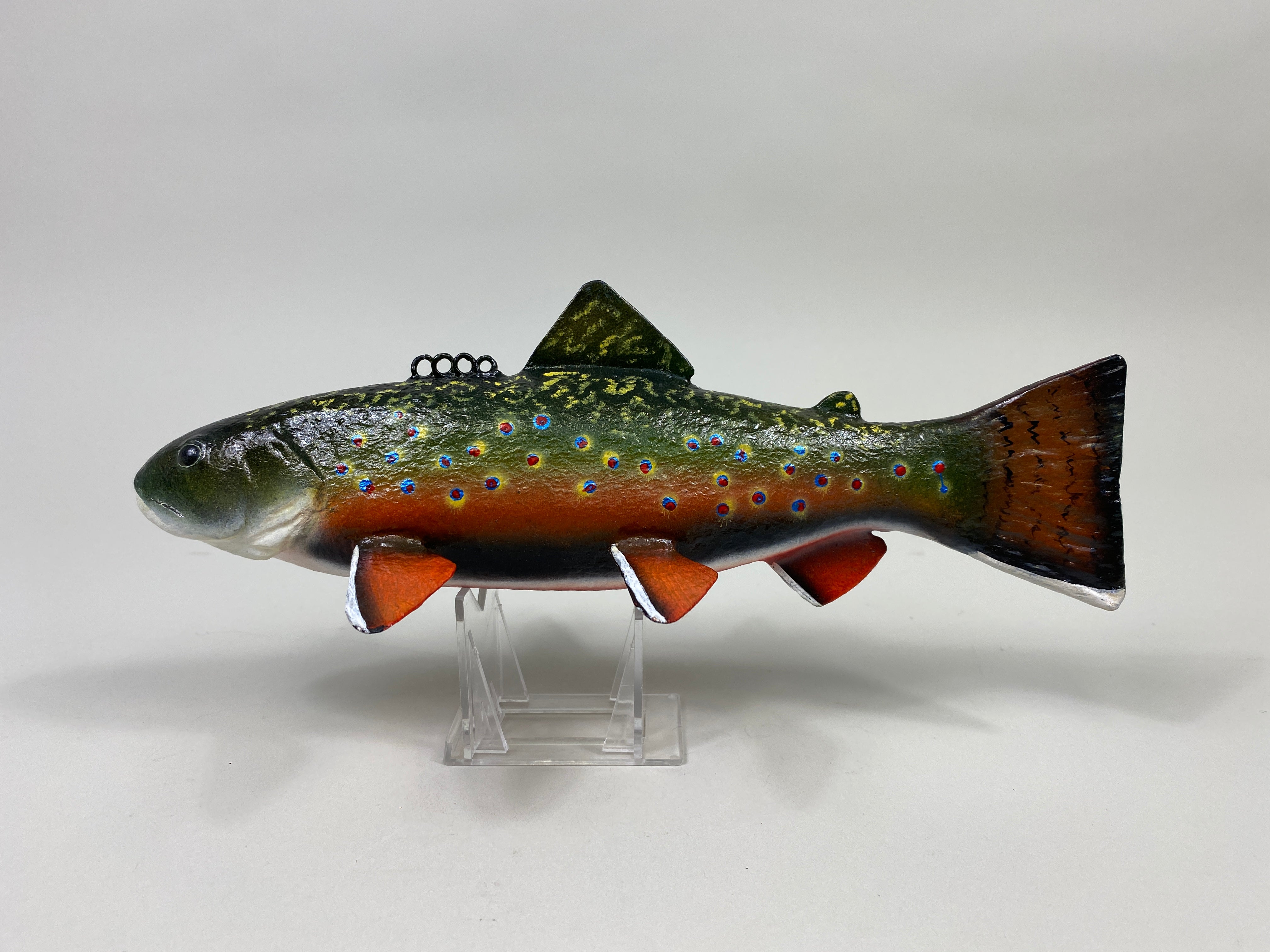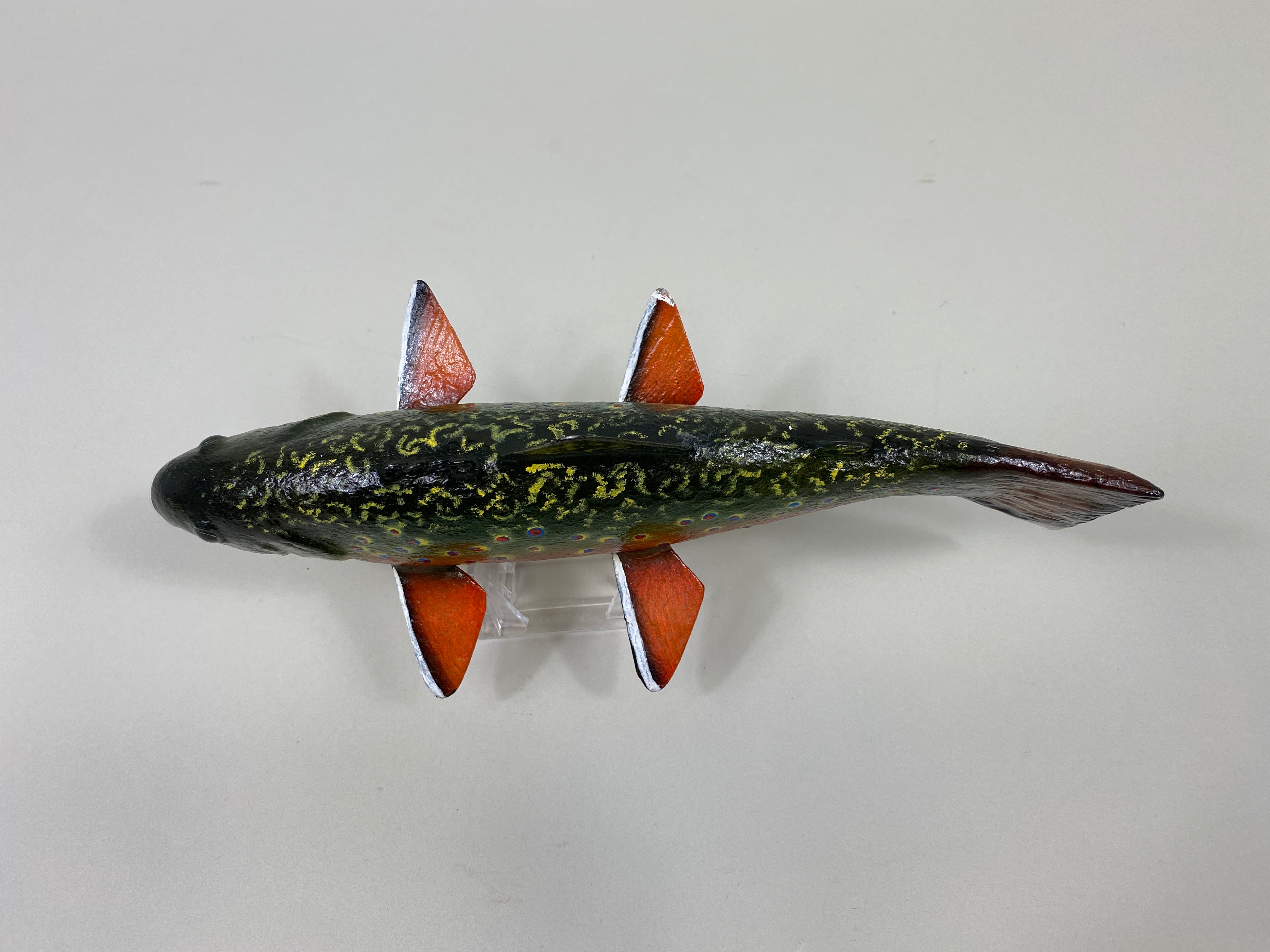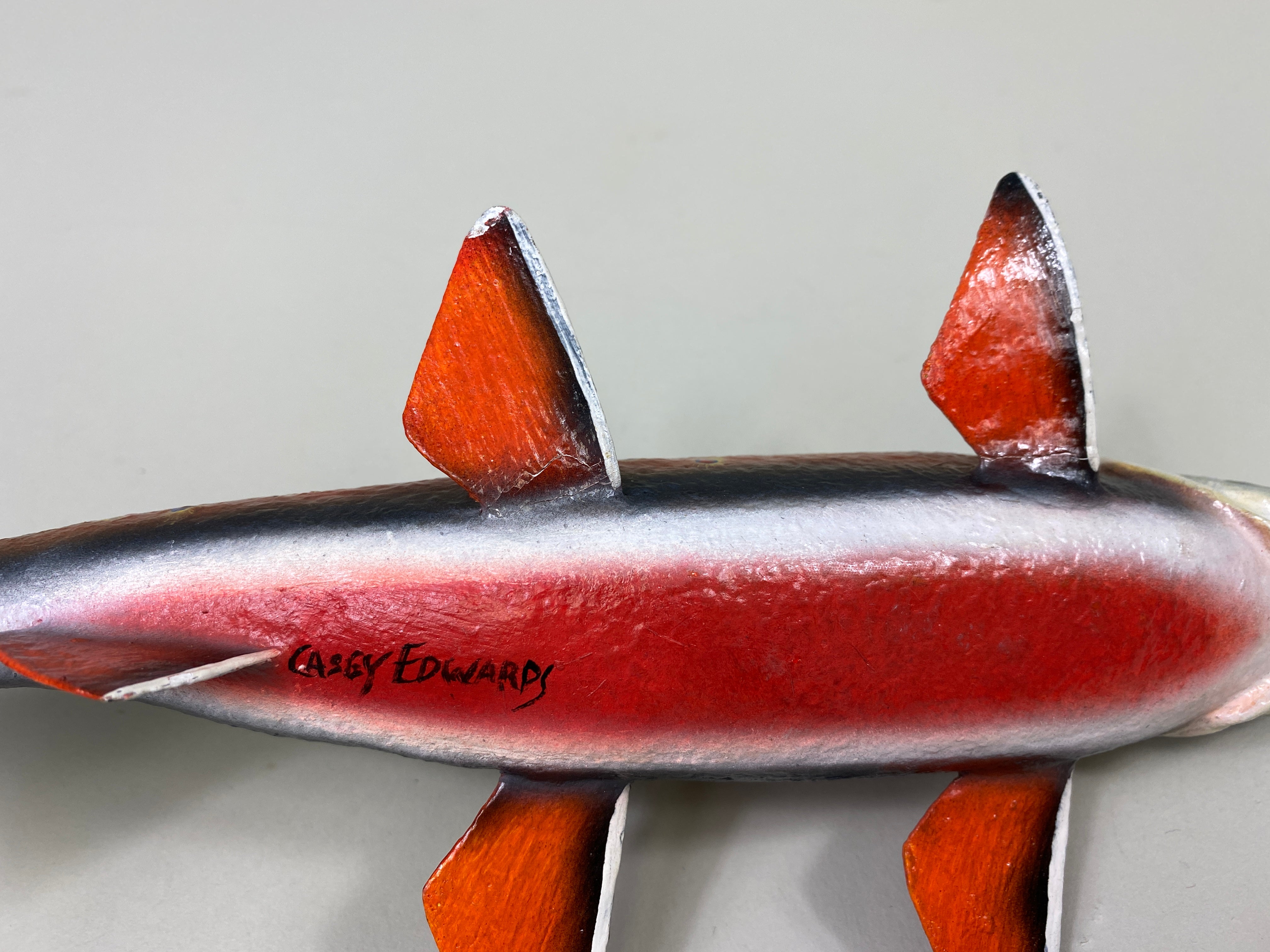 Casey Edwards Trout Fish Spearing Decoy, Mason, Wisconsin. Glass eyes, original paint, detailed carving on the tail and head, as well as detailed paint making this look life like. Wooden...