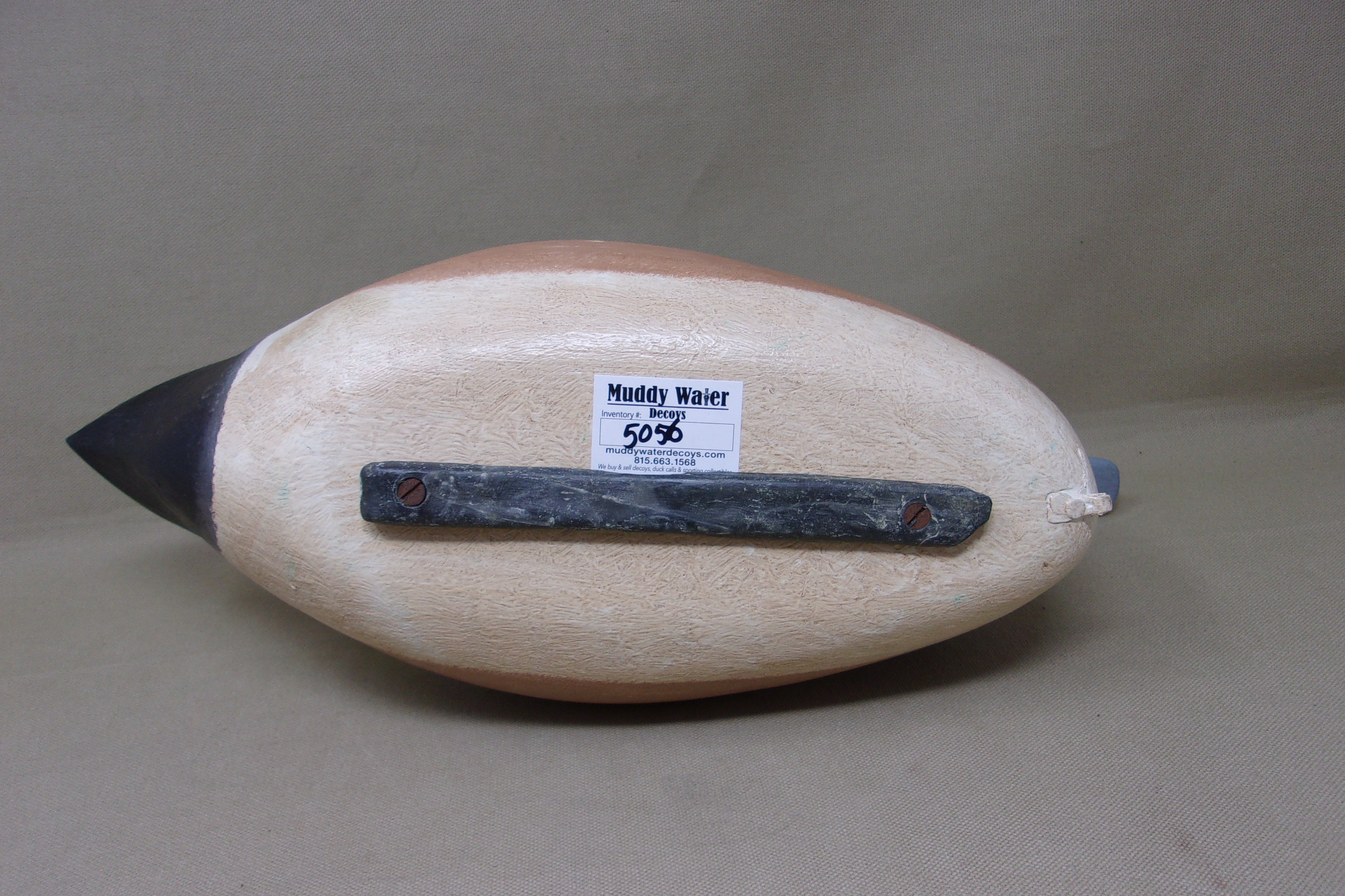 Evans Factory Bluebill Hen, Ladysmith, Wisconsin. Glass eyes, solid body, original paint, factory stamp, paw print. and #27 on bottom, has BB marks and hunting wear, chip of wood missing...